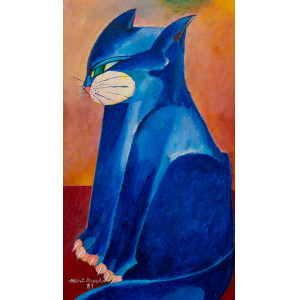 Aldemir Martins - Gato Azul - 1981 - Acrílica sobre tela - Assinado verso - 48 x 28 cm.