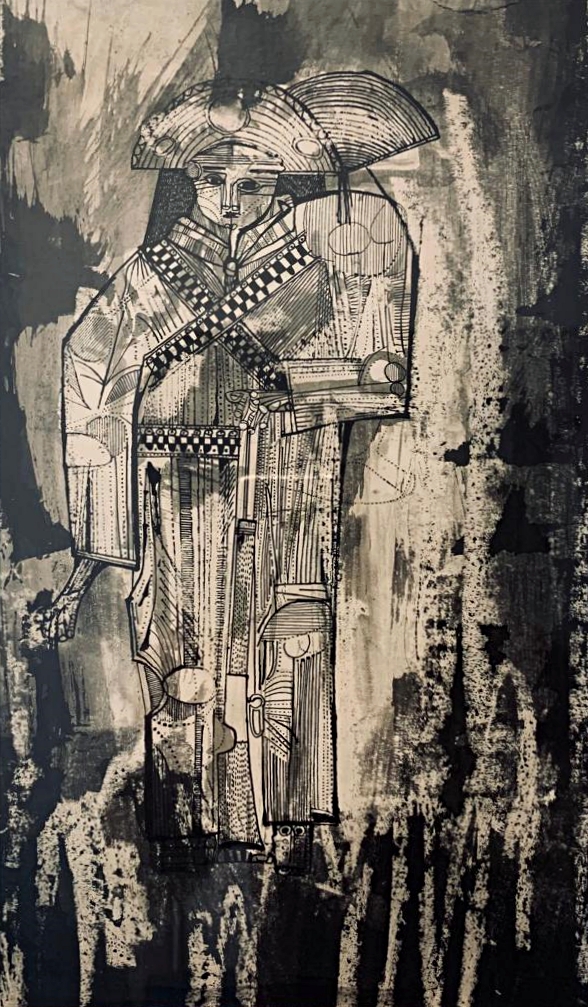 Aldemir Martins - Girassol. Nanquim e acrílica sobre papel, 69x19 cm, 1962, A.C.I.E. e V. Sem moldura