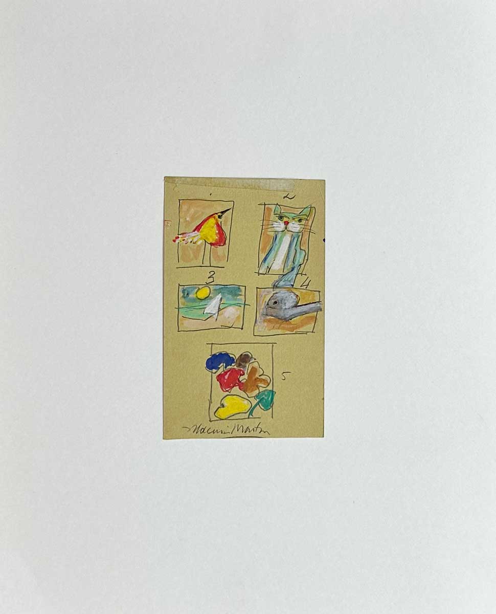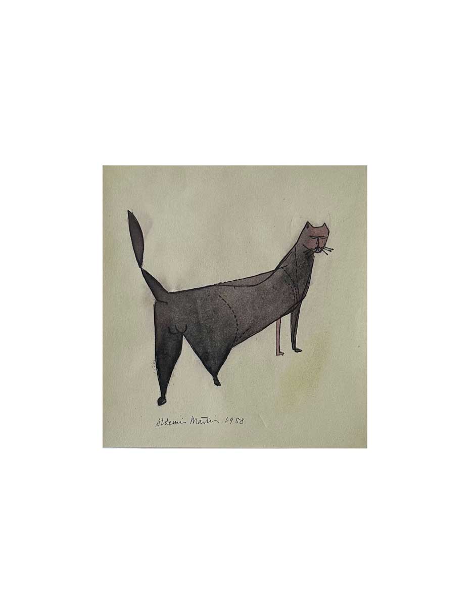ALDEMIR MARTINS - Gato - 1958 - desenho a nanquim e aquarela - 16 x 14 cm. Ass. inf. esq. Com certificado de Autenticidade