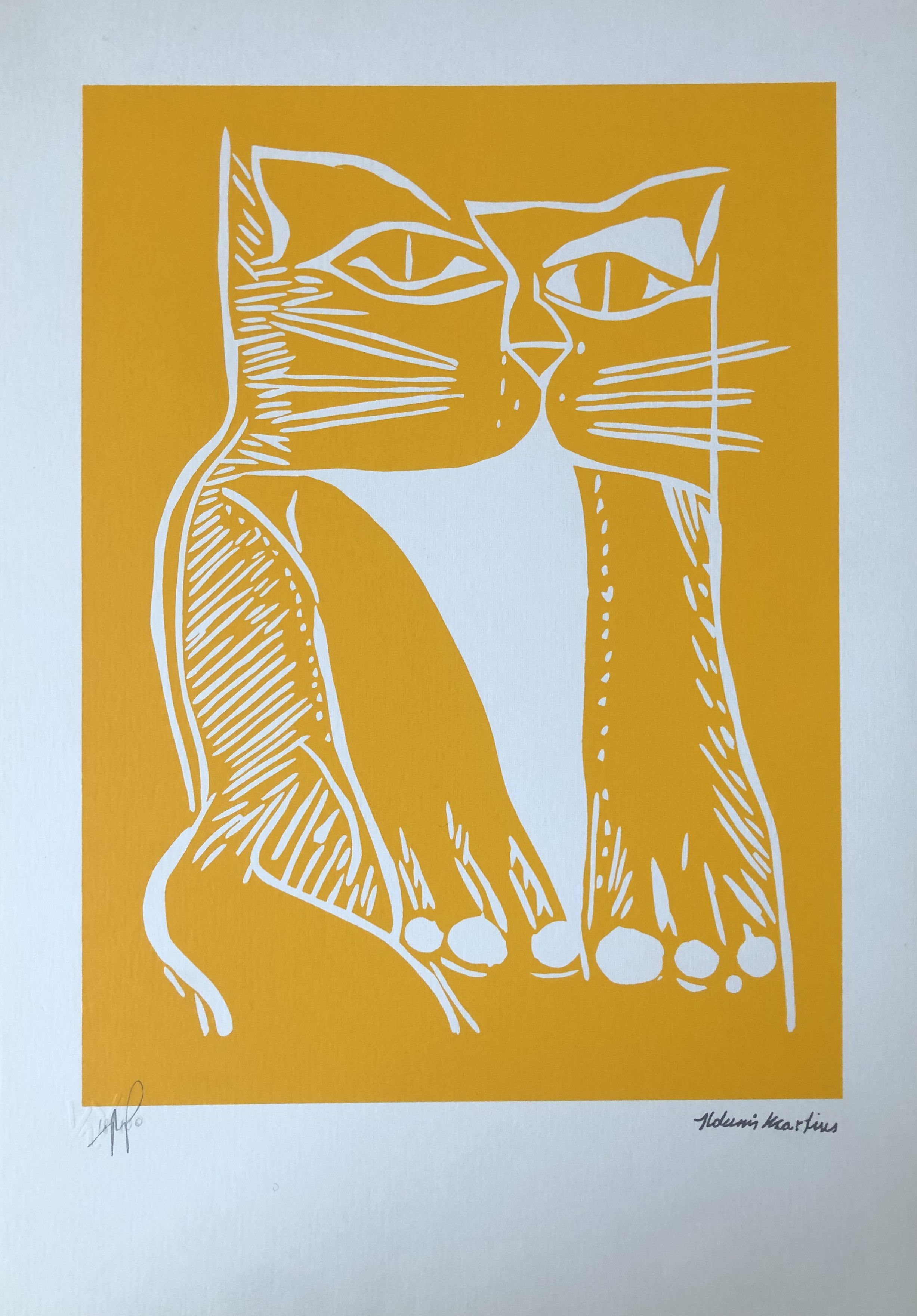 Aldemir Martins - Gato Fundo Ocre - Serigrafia 43/90 - 44x50 - Acid - Edição Postutuma