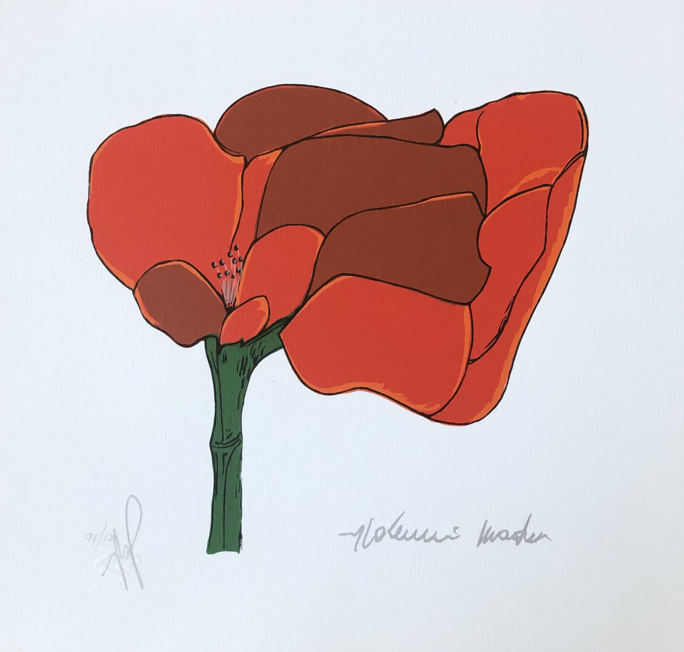 Aldemir Martins - Flor Vermelha - Serigrafia 91/120 - 50x70 - Acid - Edição Postutuma