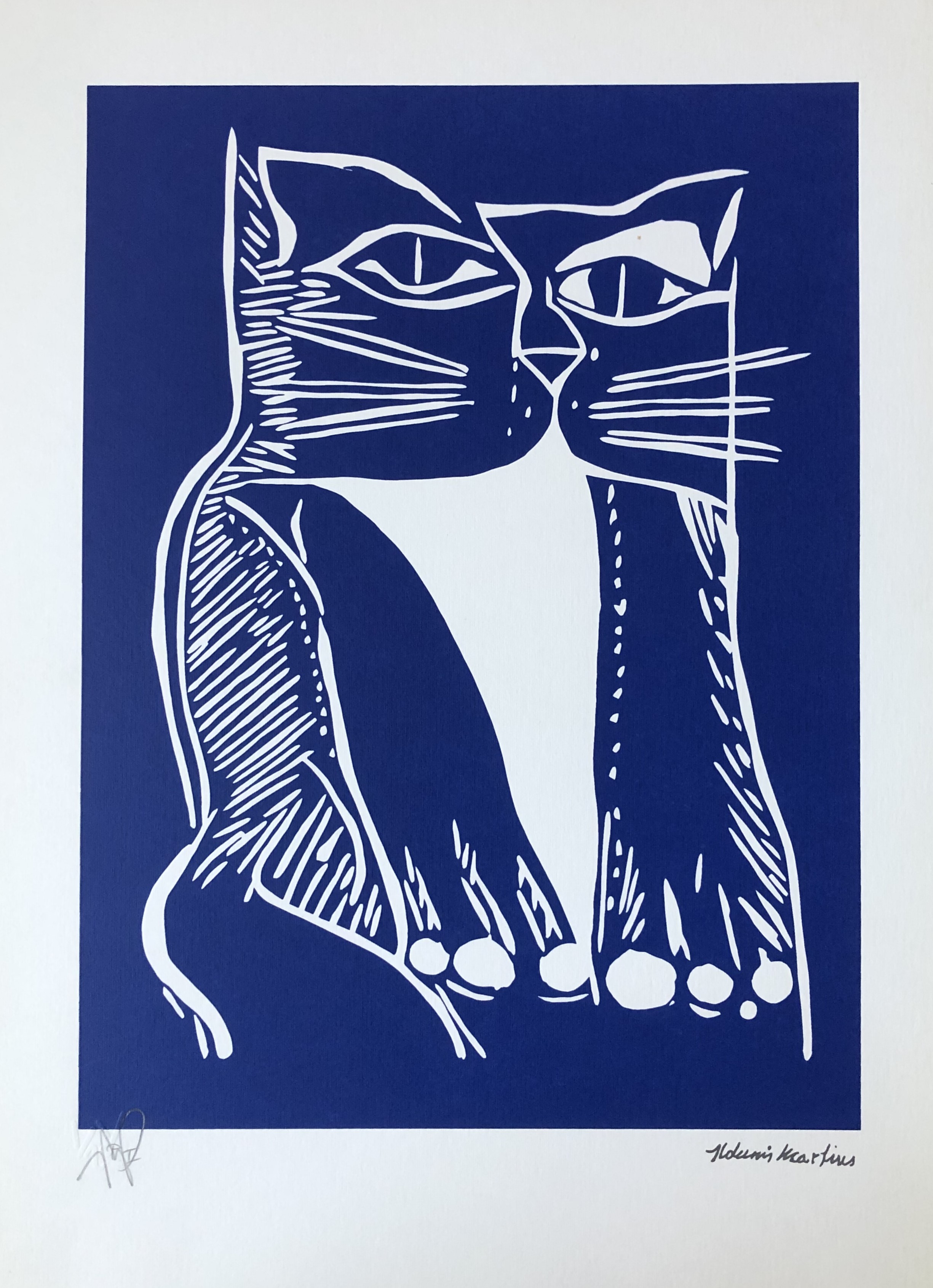 Aldemir Martins - Gato Azul - Serigrafia 38/100 - 50x70 - Acid - Edição Postutuma