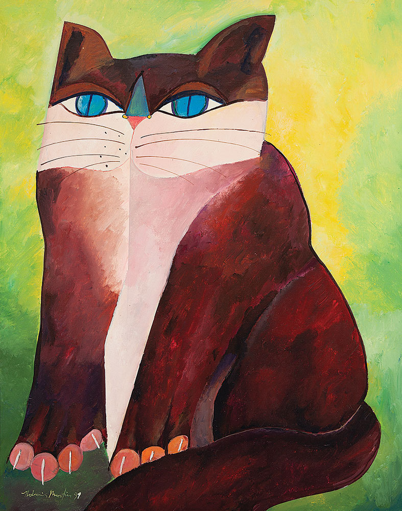 Aldemir Martins - Gato - Guache sobre cartão - 12x12 - Acie