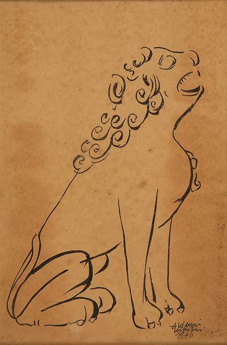 Aldemir Martins - Gato - 35 x 50 cm - Nanquim sobre papel - Assinatura canto inferior direito e Data 1959 - Catalogado sob o número 10131 da Galeria Bonino