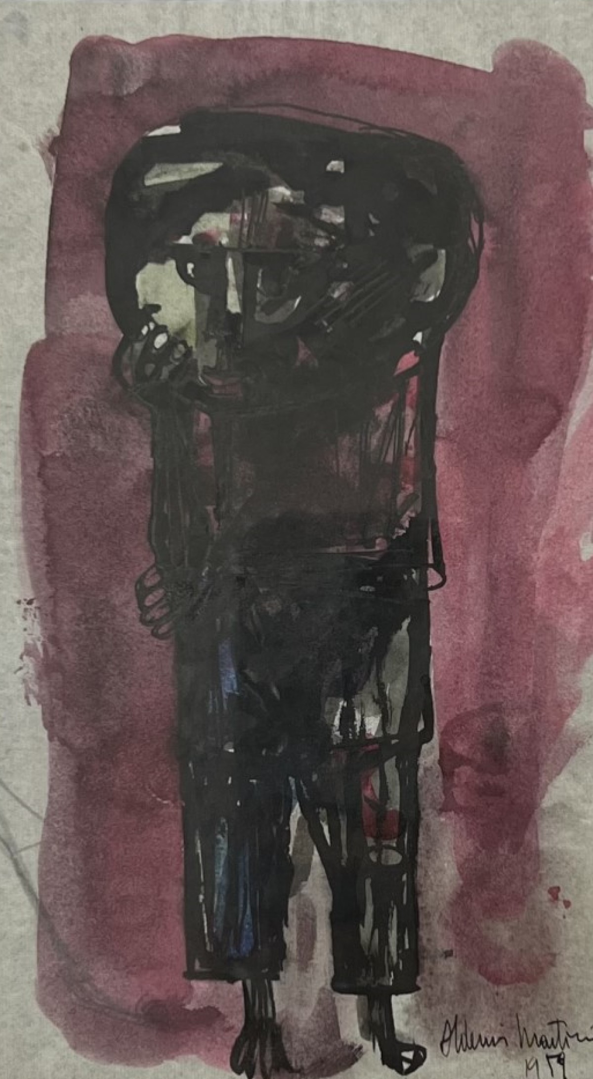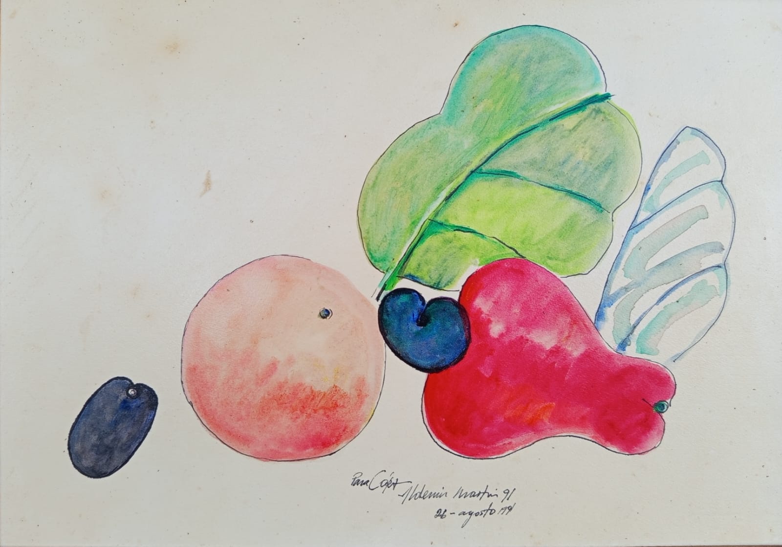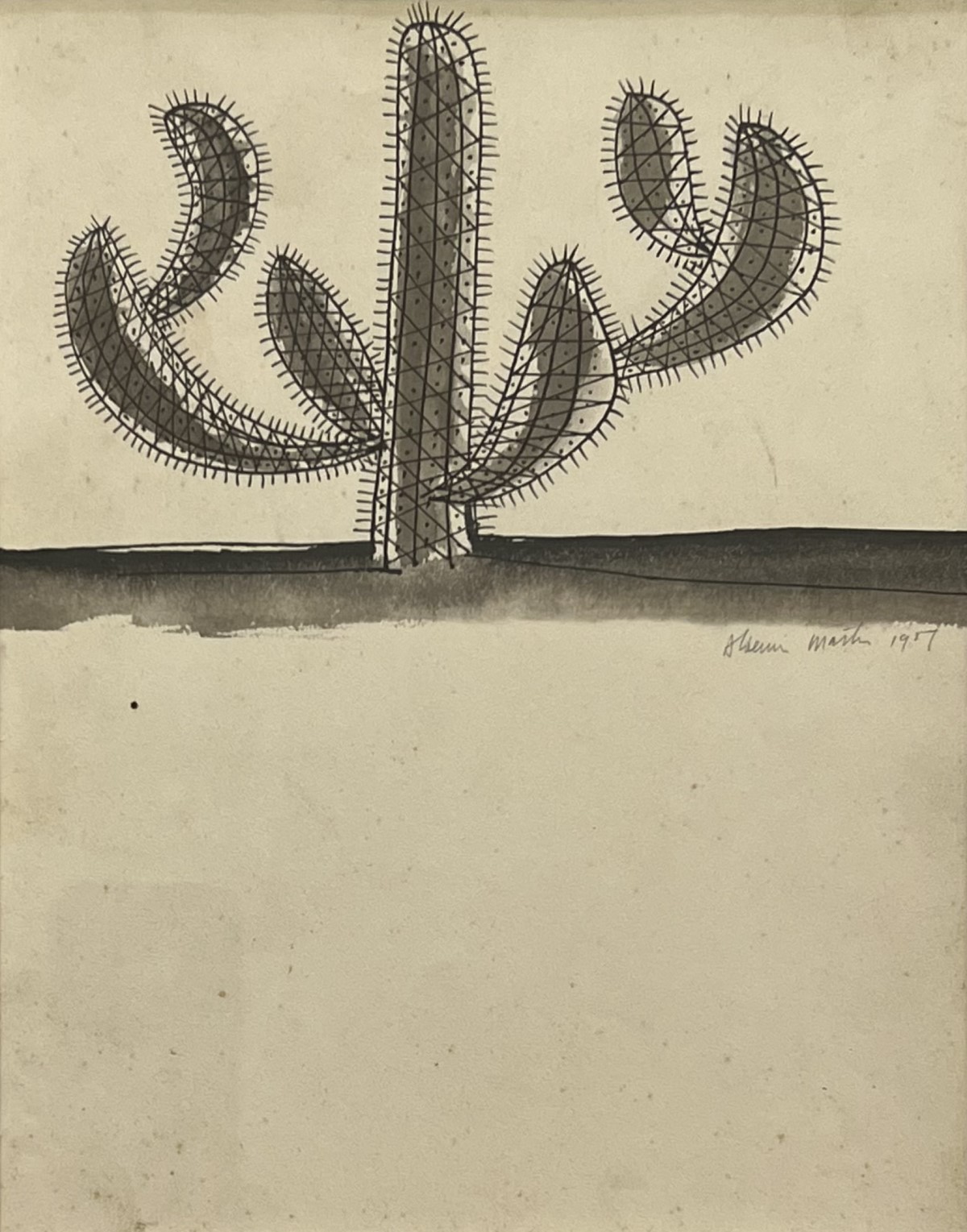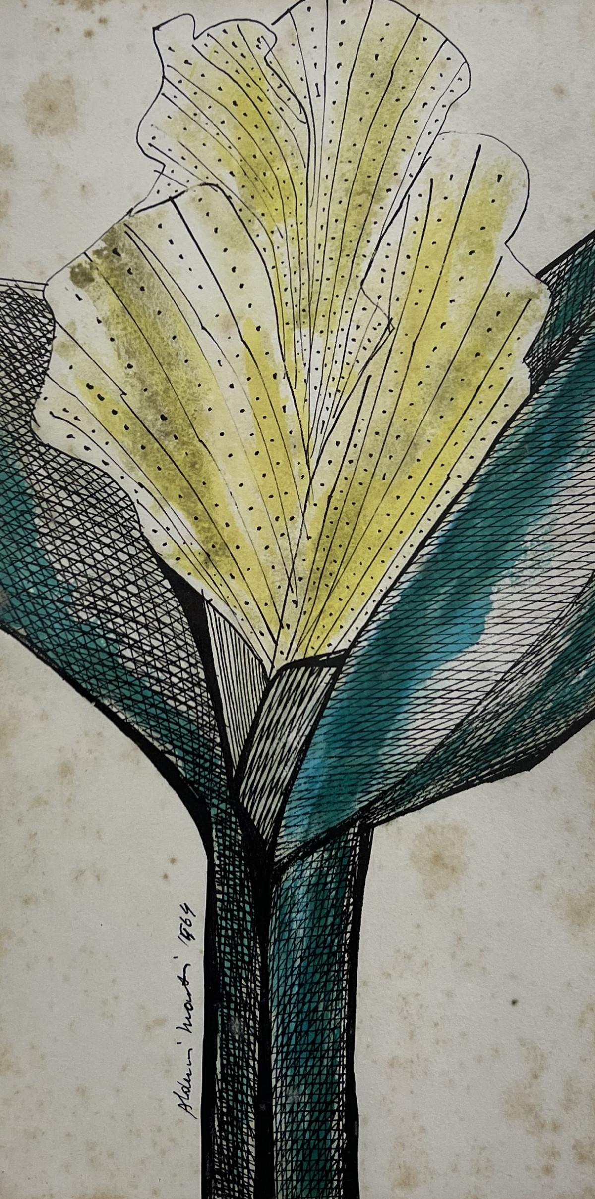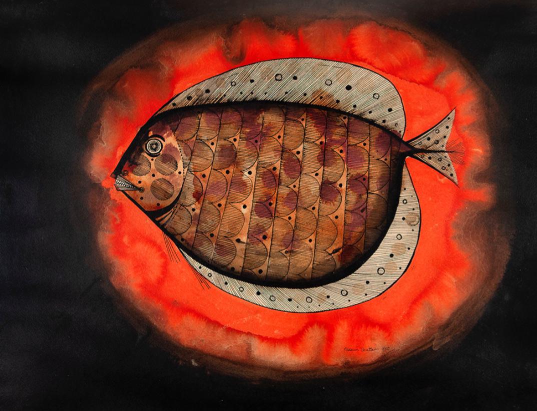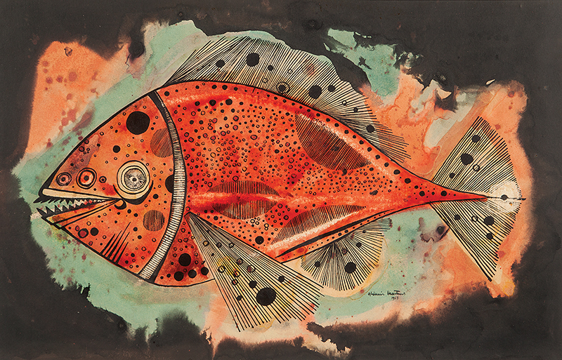 Aldemir Martins - Côcos - 35 x 35 cm - Nanquim e aguada sobre papel - Assinatura canto inferior direito e Data 1960 - Catalogado na Galeria Bonino sob o número 782