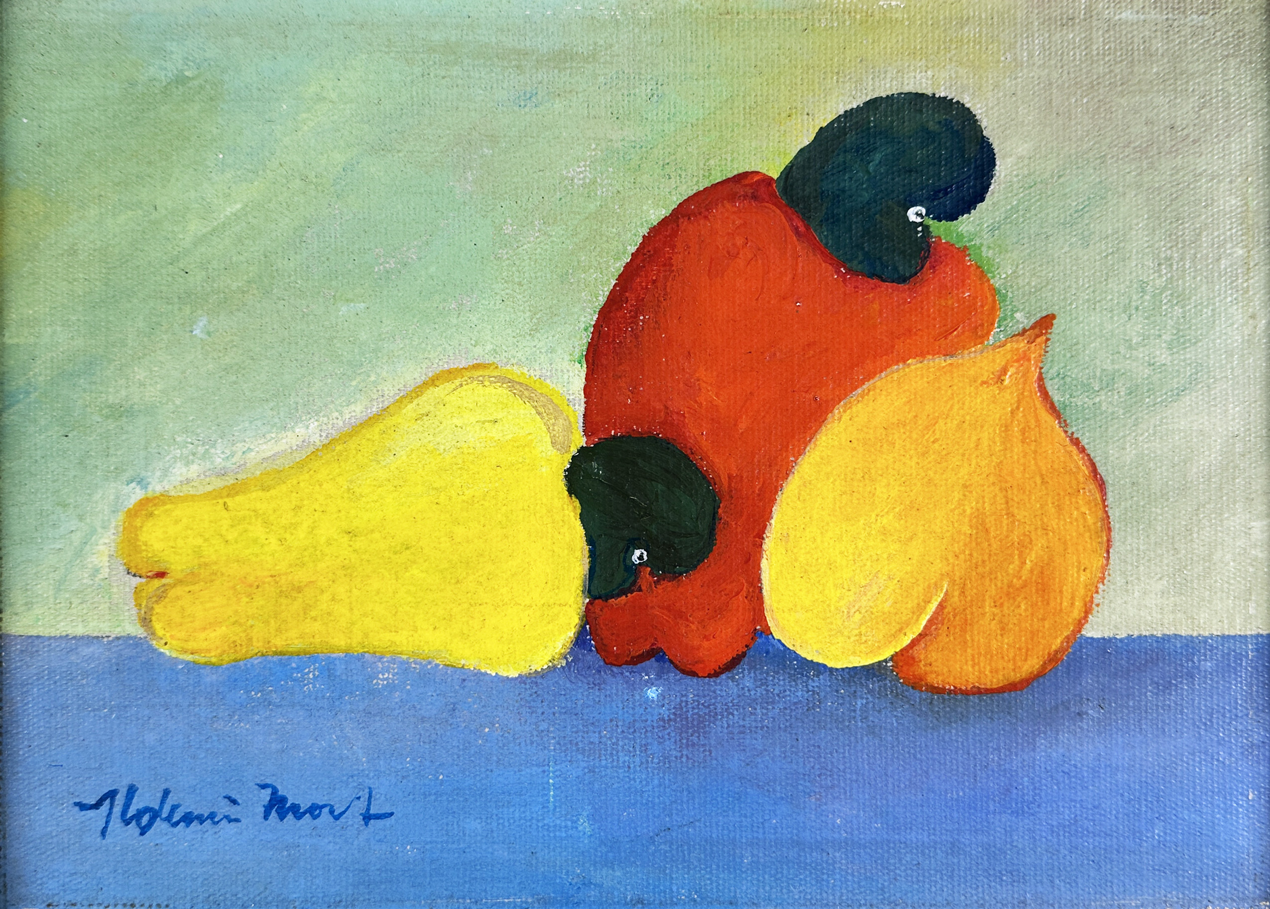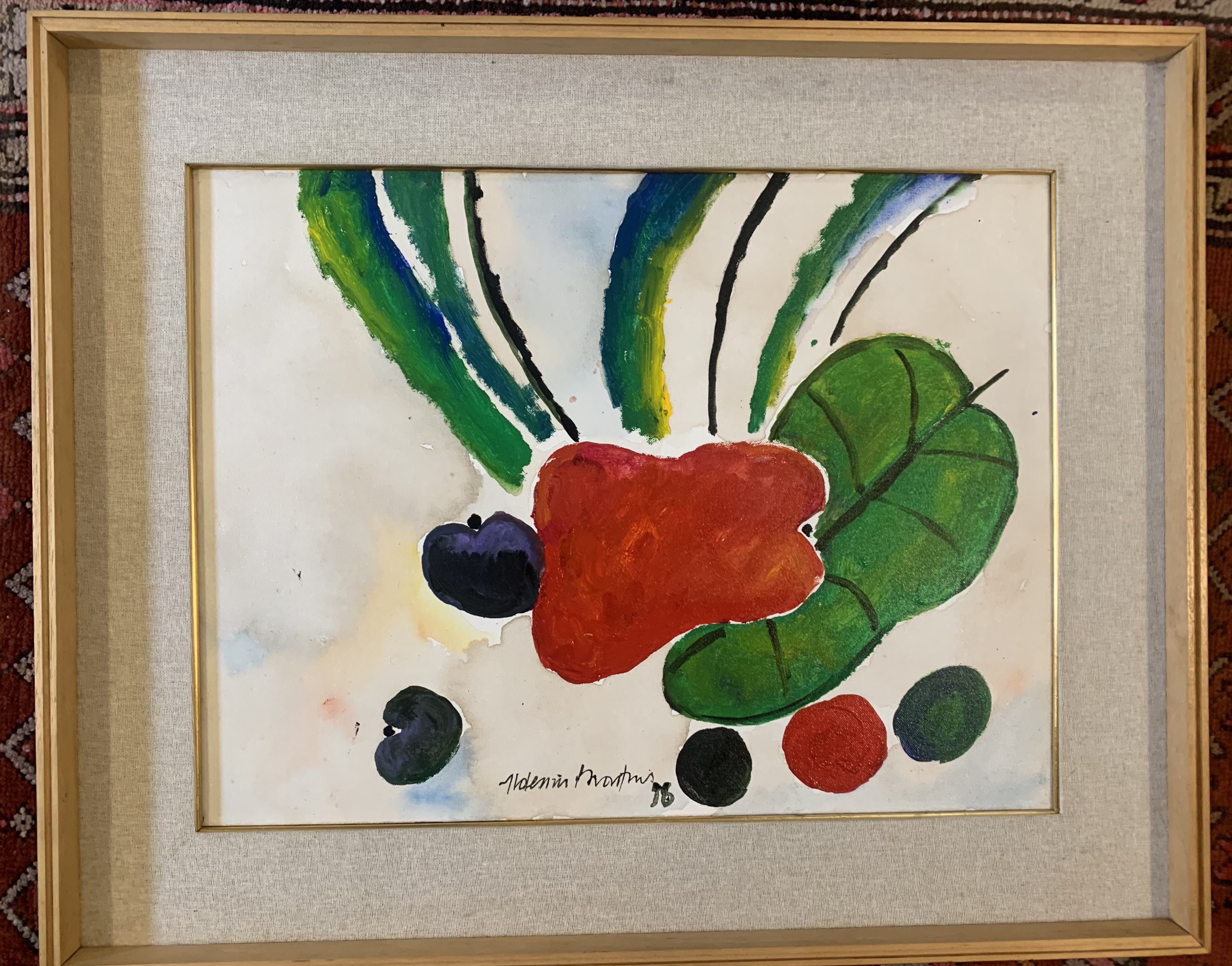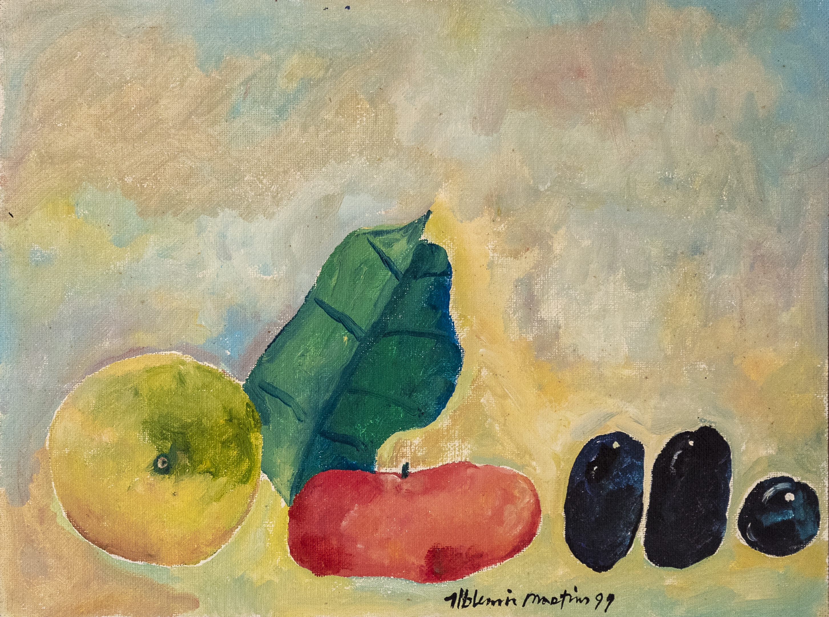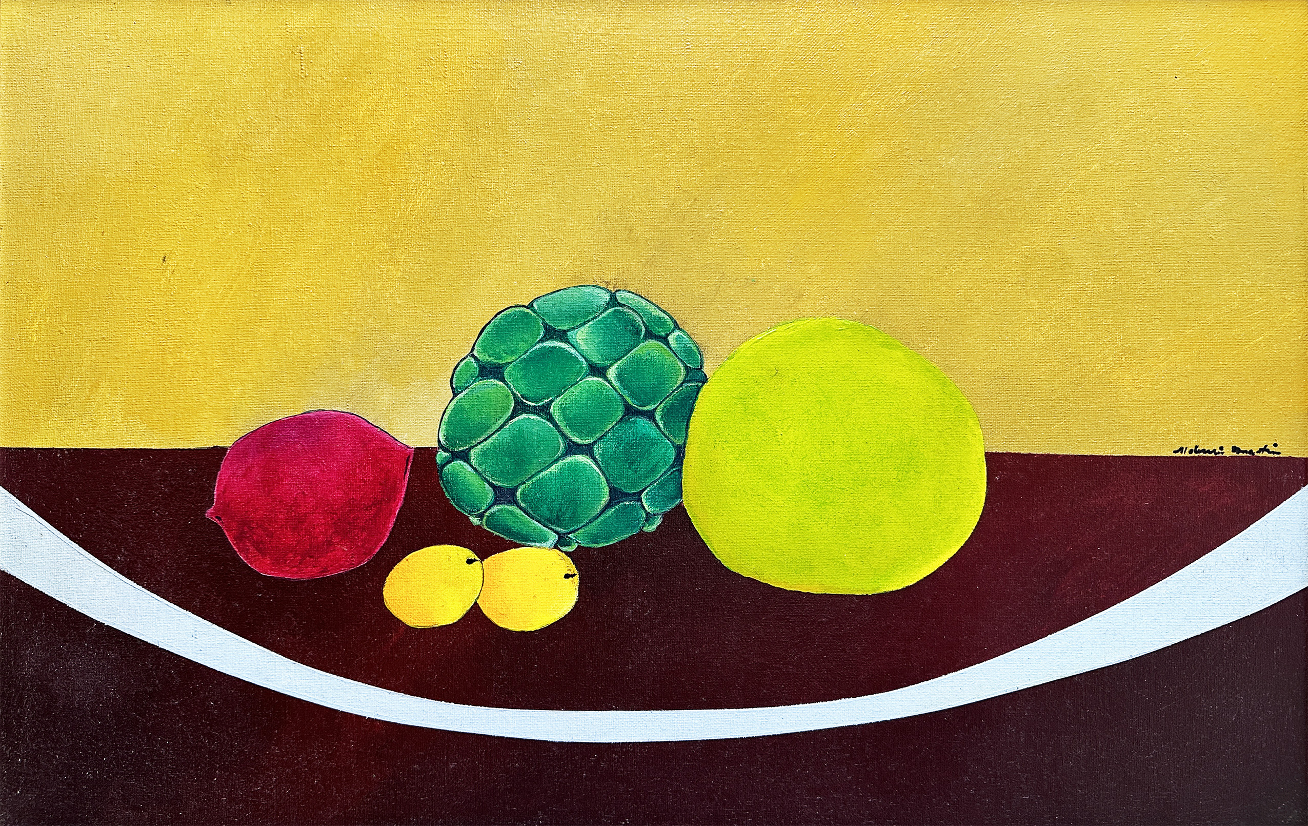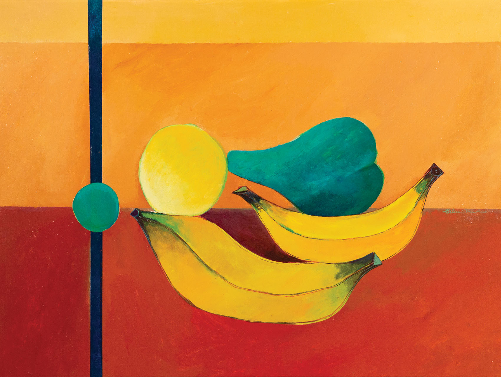 Aldemir Martins - Bananas verdes - 59 x 73 cm - Óleo sobre tela - Assinatura canto inferior direito e Data 1973 - Catalogado sob o número BR 5503 da Galeria Bonino