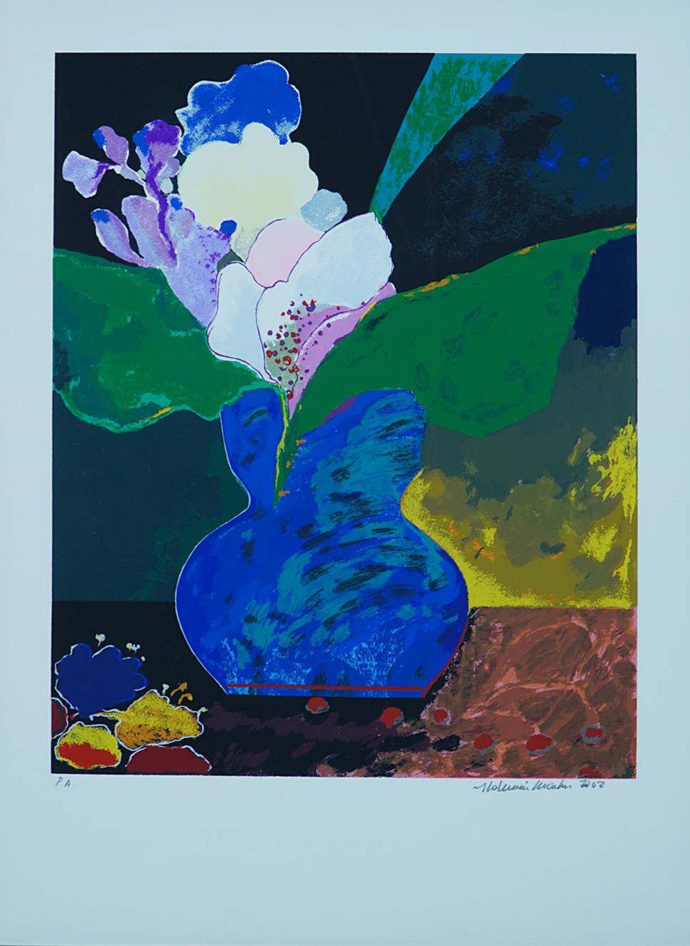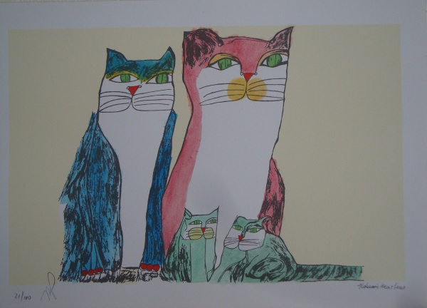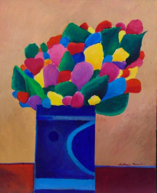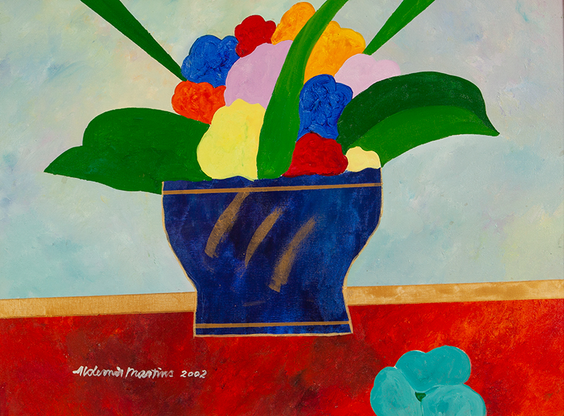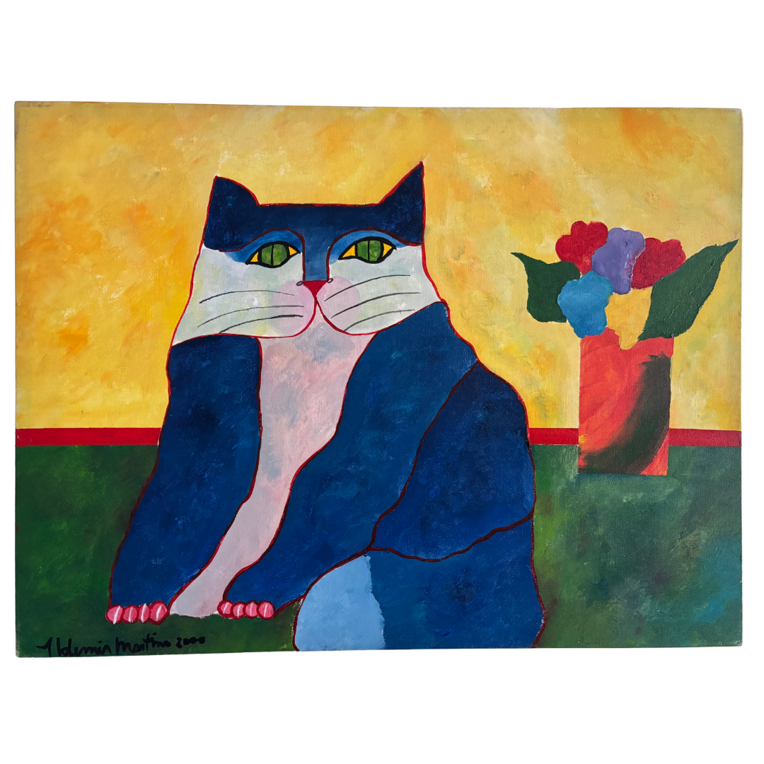 ALDEMIR MARTINS - Gato azul com vaso de flores - acrílico sobre tela - Medidas: 60 x 80 cm - Assinatura: canto inferior direito e dorso - 2003