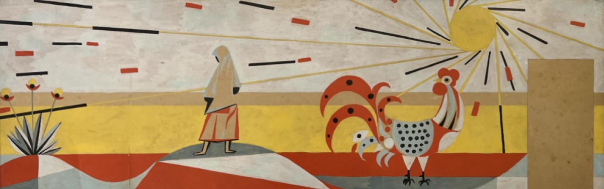 Aldemir Martins, Projeto,1990, Acrilico Sobre Cartão,30x90, Acie, Estudo para painel em pastilhas de vidro realizado pelo artista