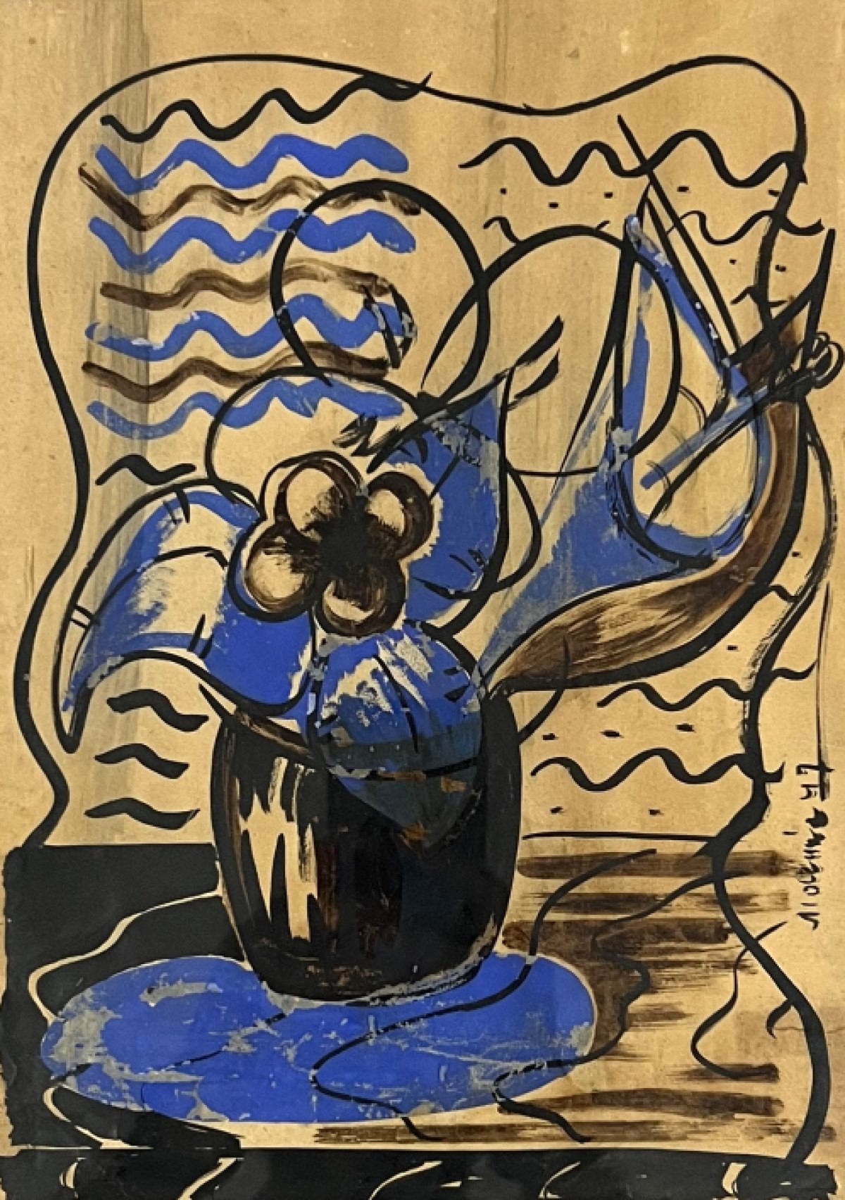 ALDEMIR MARTINS - Gato - 1958 - desenho a nanquim e aquarela - 16 x 14 cm. Ass. inf. esq. Com certificado de Autenticidade