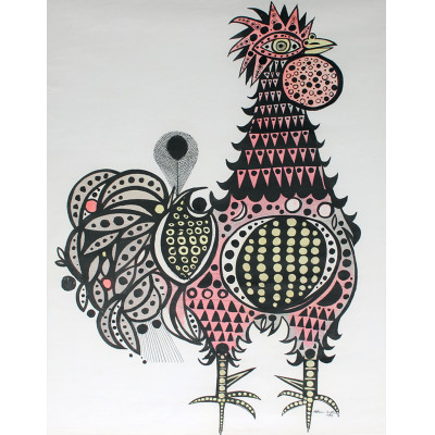 Aldemir Martins nanquim sobre papel 50 x 32cm "Galo" ass. CID datada 1967 apresenta pequenos pontos de fungo