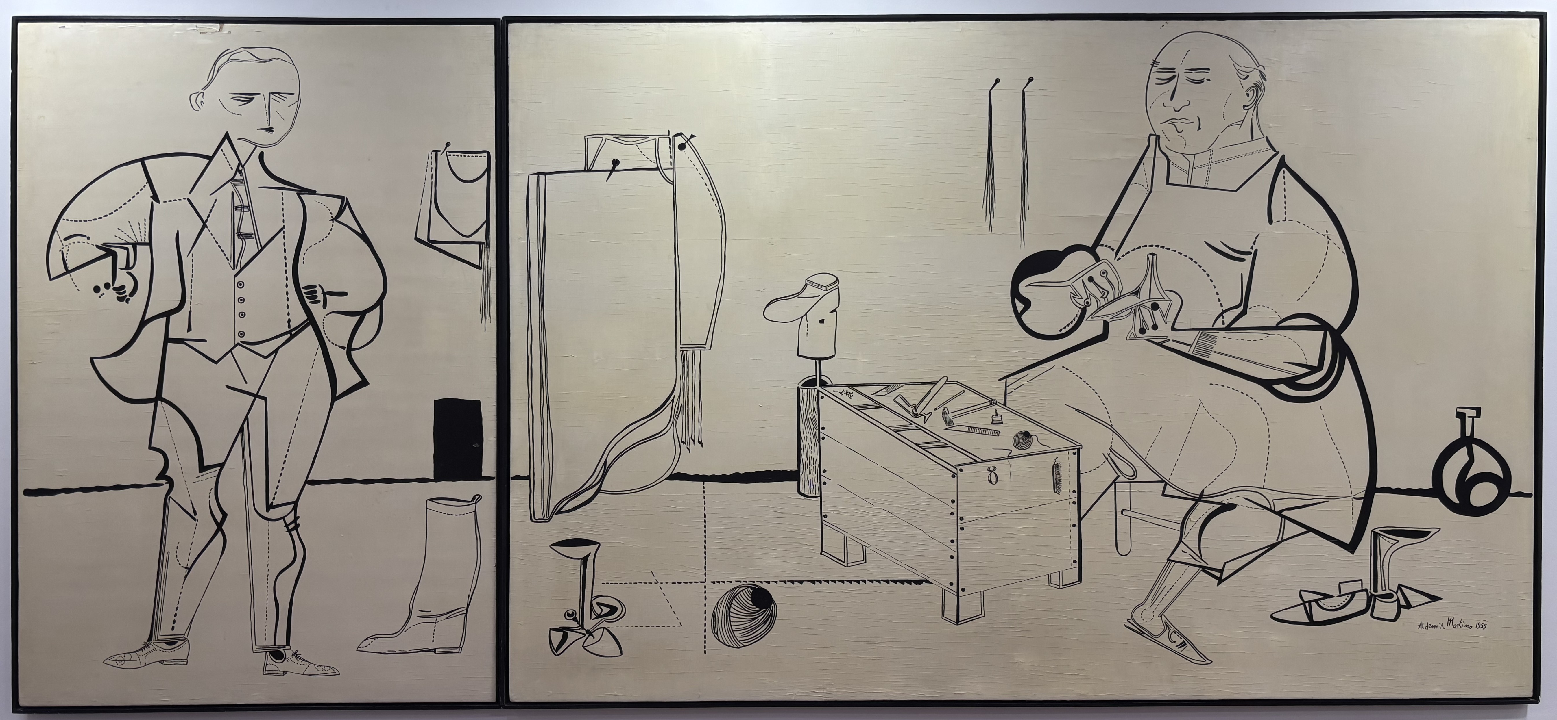 Aldemir Martins, Aldemir Sapateiro, 1955, Diptico - Tinta de imprensa sobre madeira, 112x250, Acid, Belas Artes