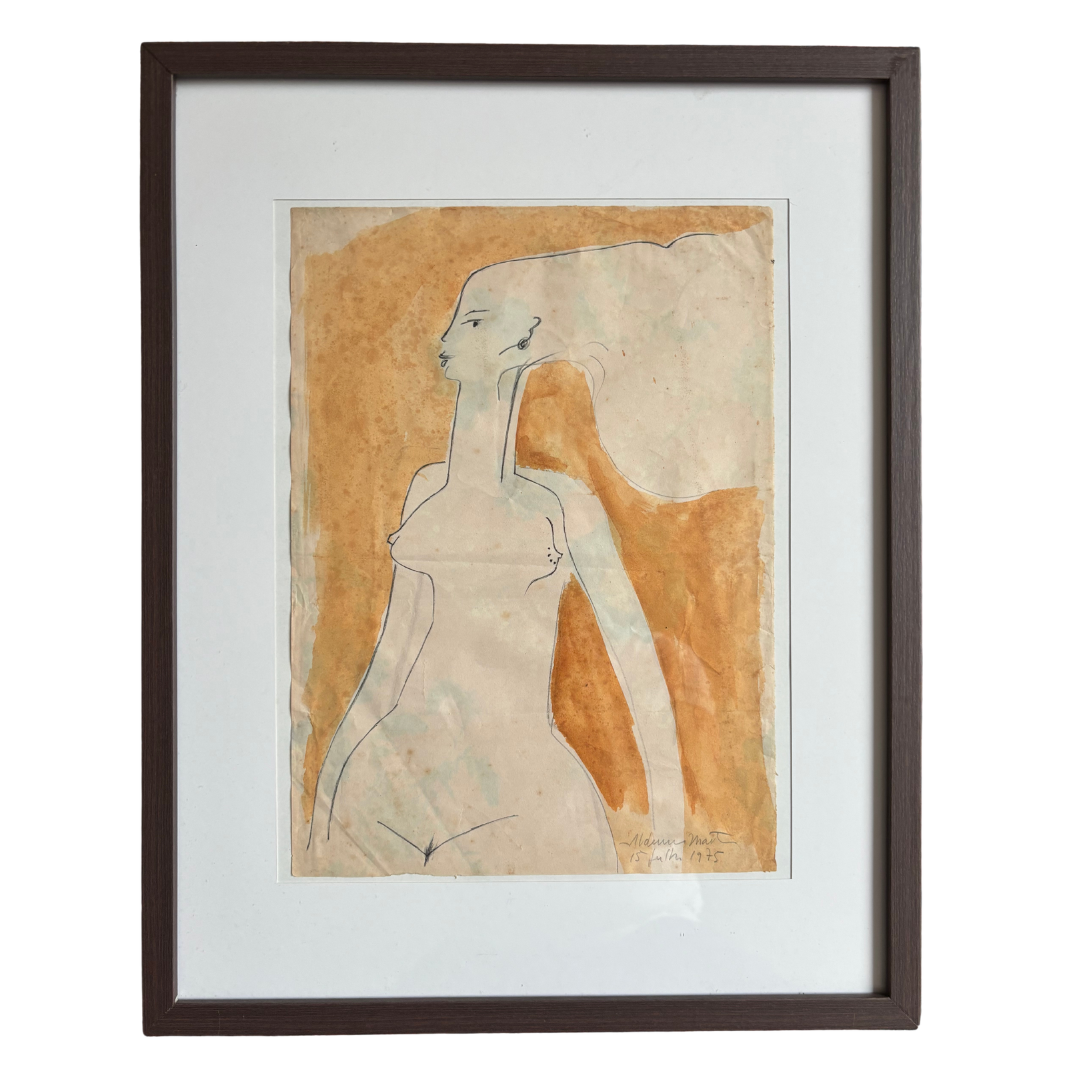 Aldemir Martins, Nú Feminino,1975, Lapis e Aquarela sobre pape,32x23, Acid, Com Certificado