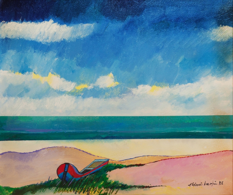 Aldemir Martins - Marinha - Óleo sobre tela - 81 alt x 130 larg (cm) - acie e verso - 1998 - Obra com selo Marques Galeria no verso