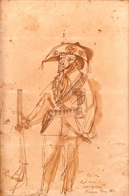ALDEMIR MARTINS - Cangaceiro com espingarda - Nanquim sobre papel - Dat. 1952 - CID - (Acompanha certificado) - 25 x 17 cm.