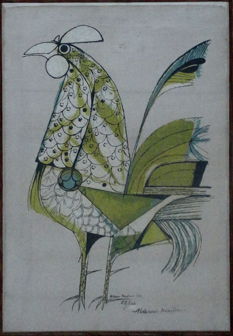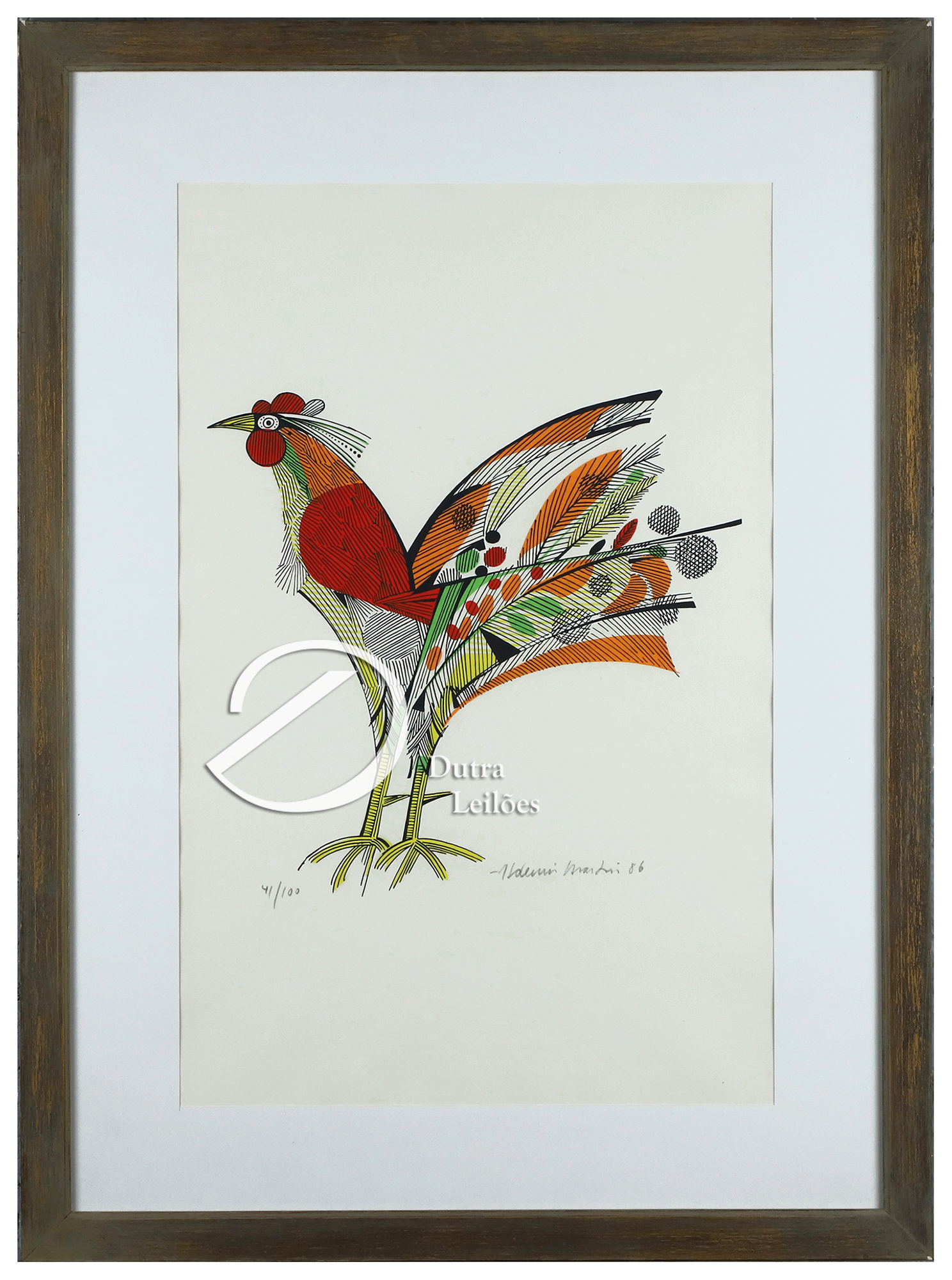 Aldemir Martins - Galo - 9-60. Serigrafia, 66x48 cm, 1966, A.C.I.D. a lápis. Com moldura