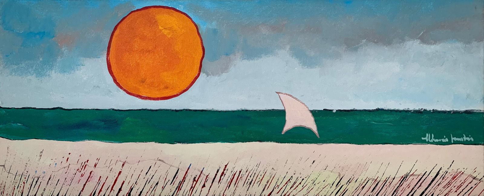 Aldemir Martins - Acrílica sobre tela. - Assinado e datado 92 inferior esquerdo. - Assinado e datado Maio 1992 e situado São Paulo-SP Brasil no verso. - 27 x 46 cm.