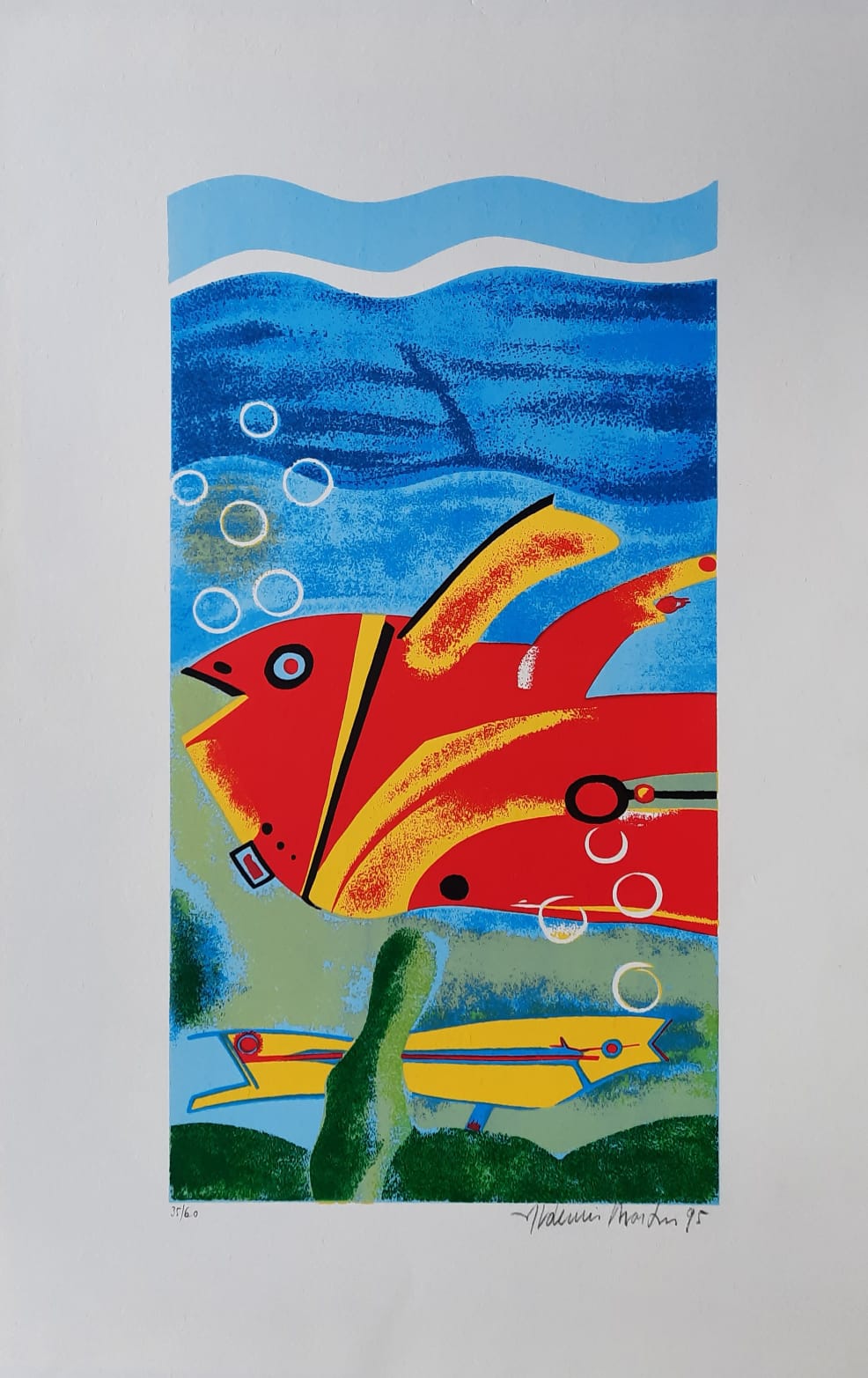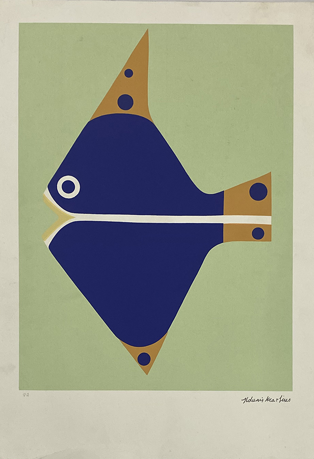 Aldemir Martins - Peixe. Acrílica sobre cartão, 30x40 cm, 1997-98, A.C.I.D. Sem moldura, com certificado assinado pelo próprio Aldemir.