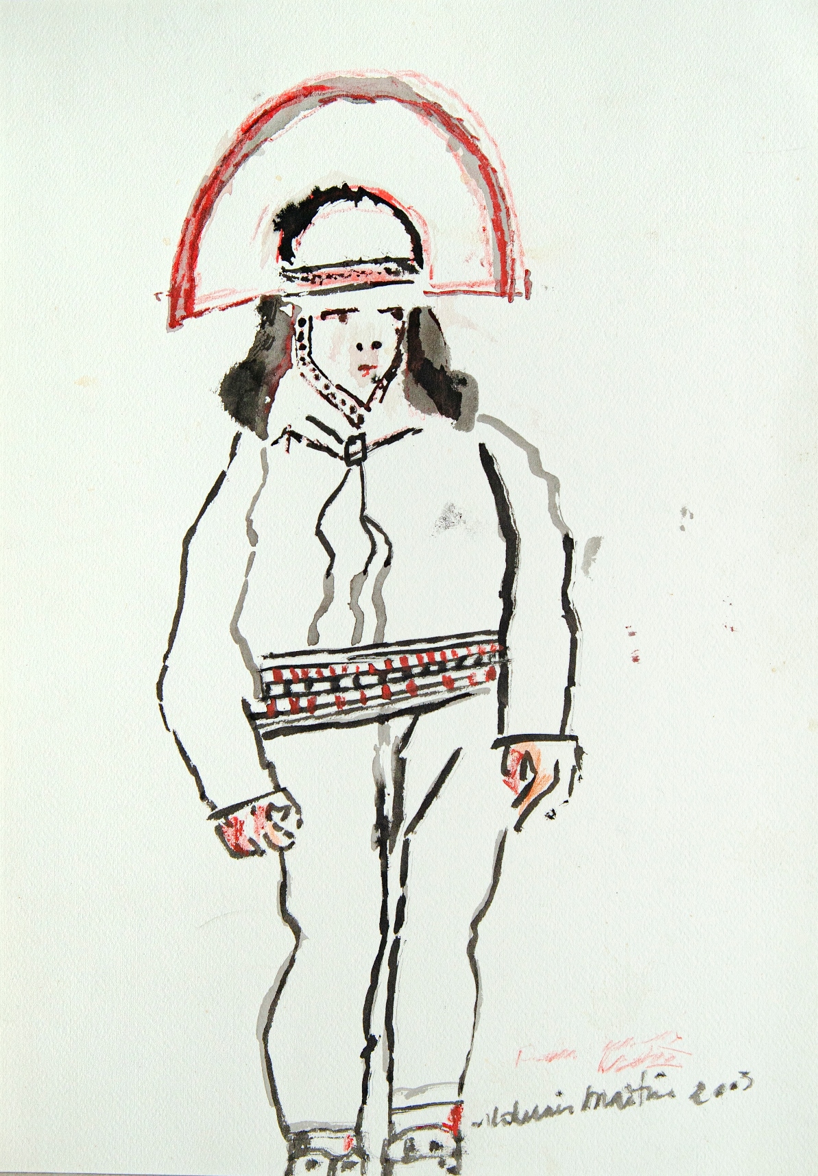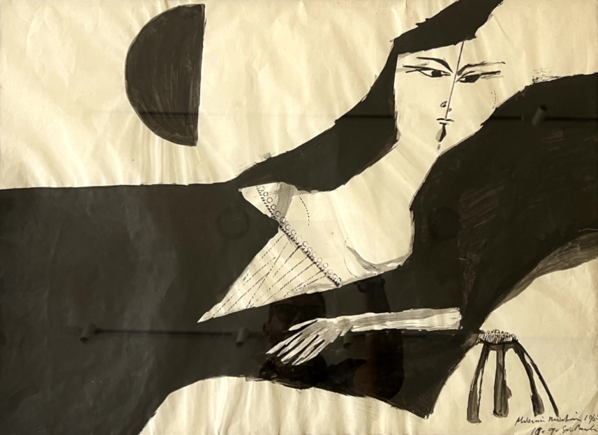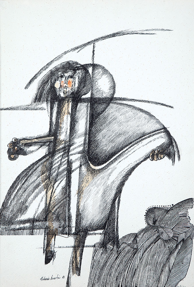 Aldemir Martins - Rendeira - Técnica mista - Medidas 59 x 41 cm - Assinado e datado de 1987 - Com certificado do Studio Aldemir Martins