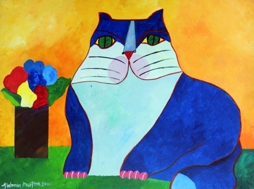 Aldemir Martins, Gato azul, 2000, Acrílico sobre tela, 60x80, Acie, Belas Artes