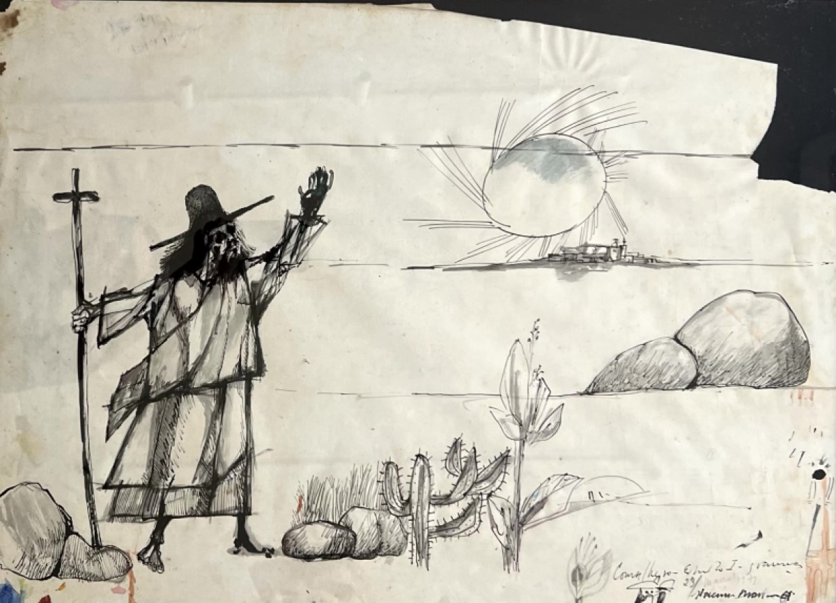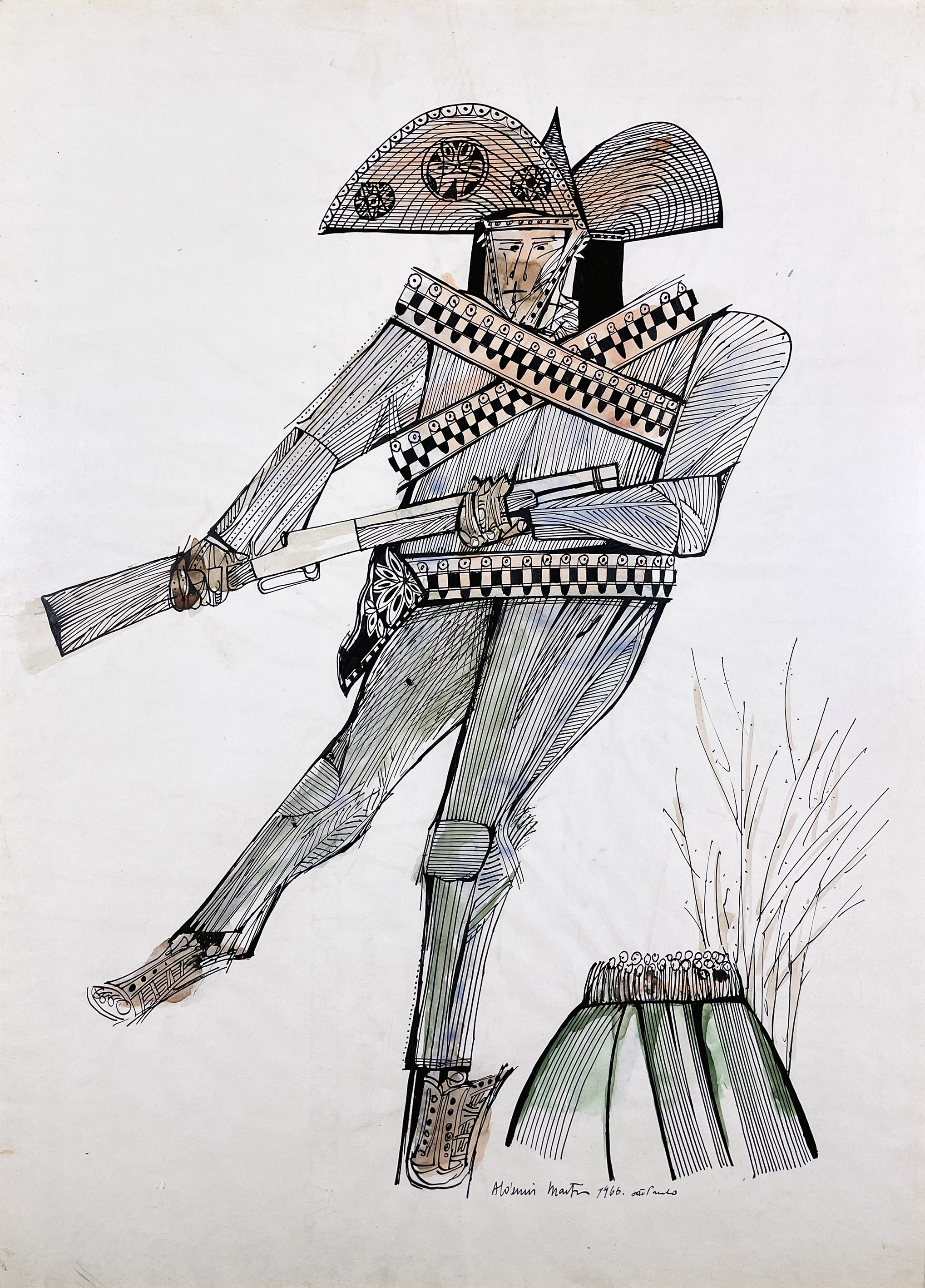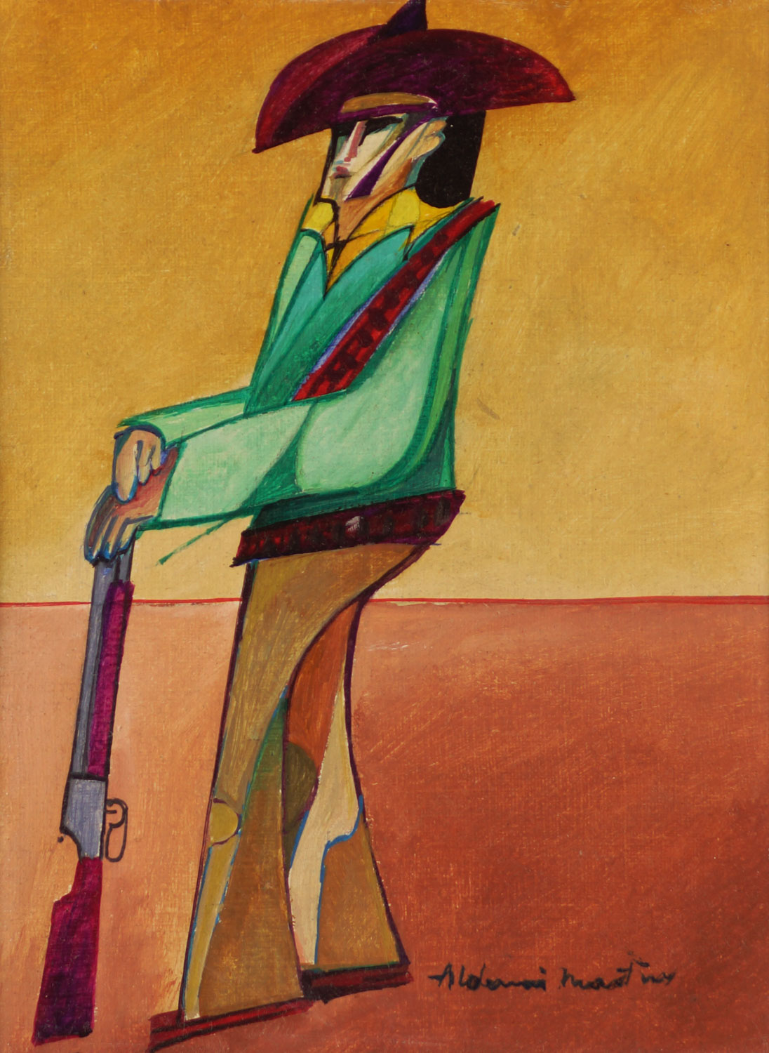 Aldemir Martins - Cangaceiro - 1970/1971 - Acrílica sobre tela - Assinado canto inferior direito - 22 x 16 cm.