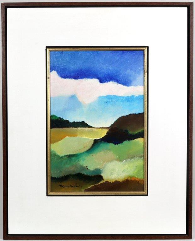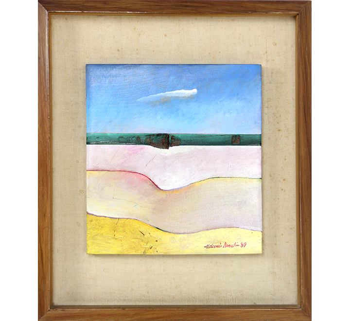 Aldemir Martins - Paisagem. Óleo sobre madeira, 29,5x27 cm, 1981, A.C.I.E. Com moldura