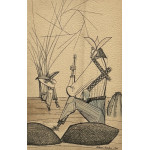 Aldemir Martins nanquim sobre cartão 37 x 20 cm "Flores" ass.centro inferior datada 1977
