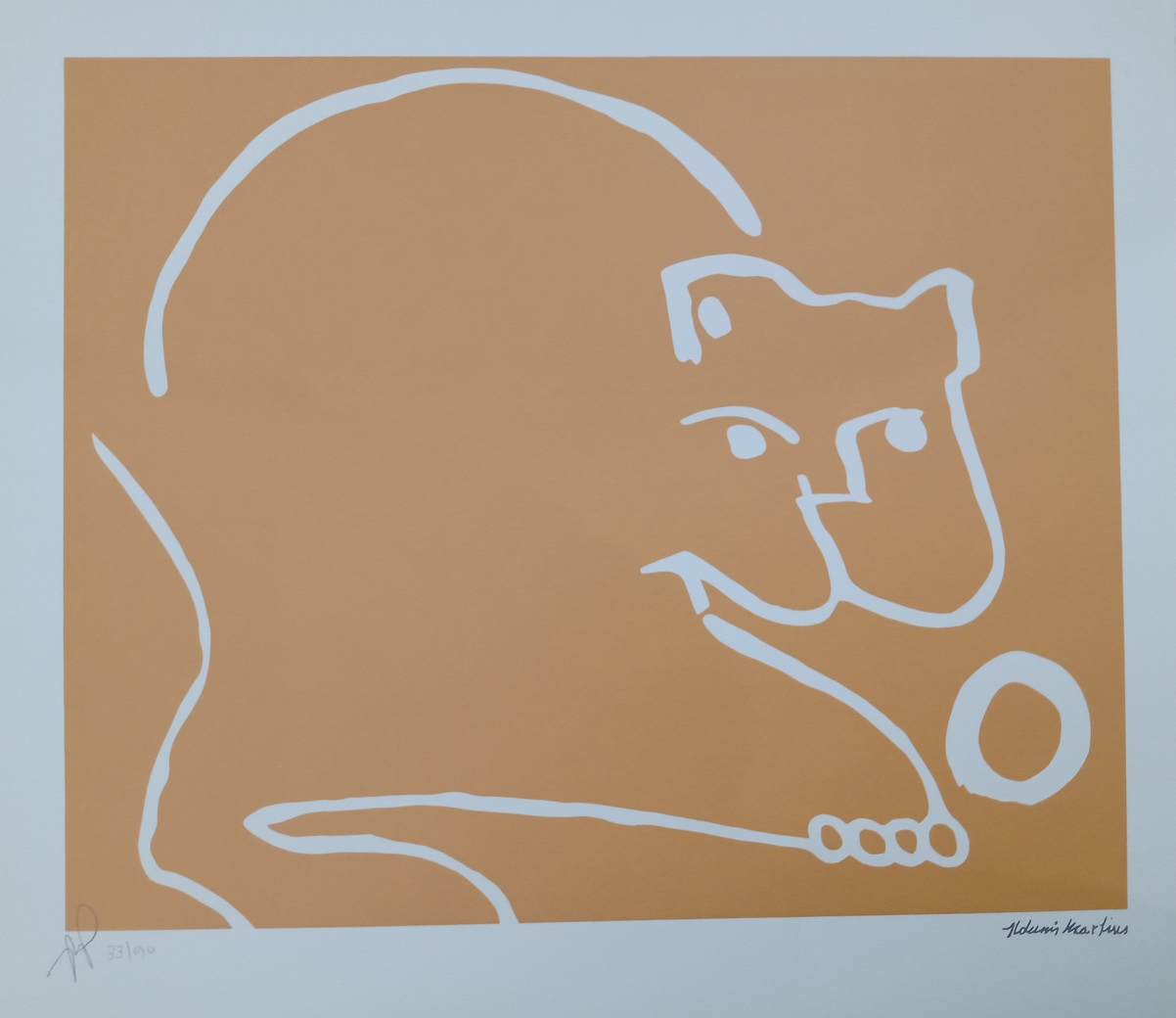 Aldemir Martins, Gato pizza, Acrílico sobre cartão, 38 diâmetro, Belas Artes