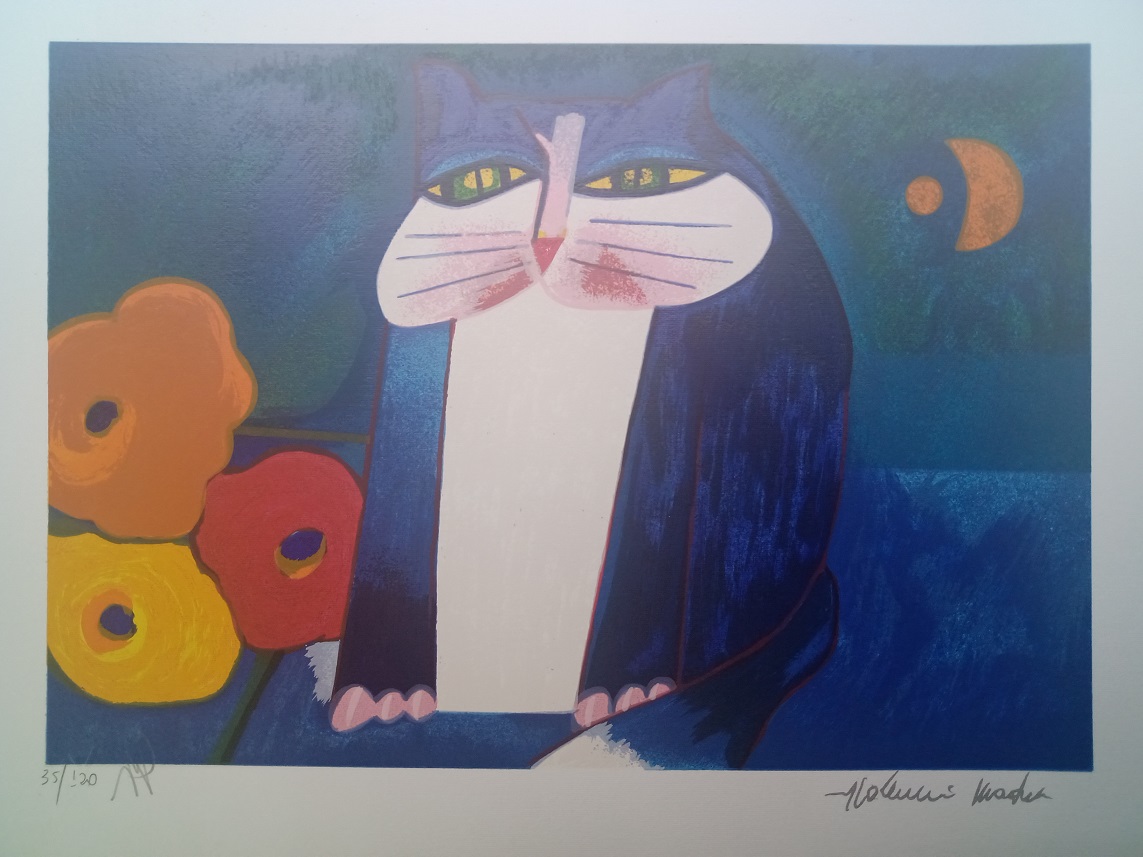 Aldemir Martins - Gato – 50 x 35 cm – Acrílica sobre Cartão sobre Eucatex – Ass. Canto Inferior Esquerdo e Dat. 2002 – Acompanha Certificado de Autenticidade assinado pelo artista