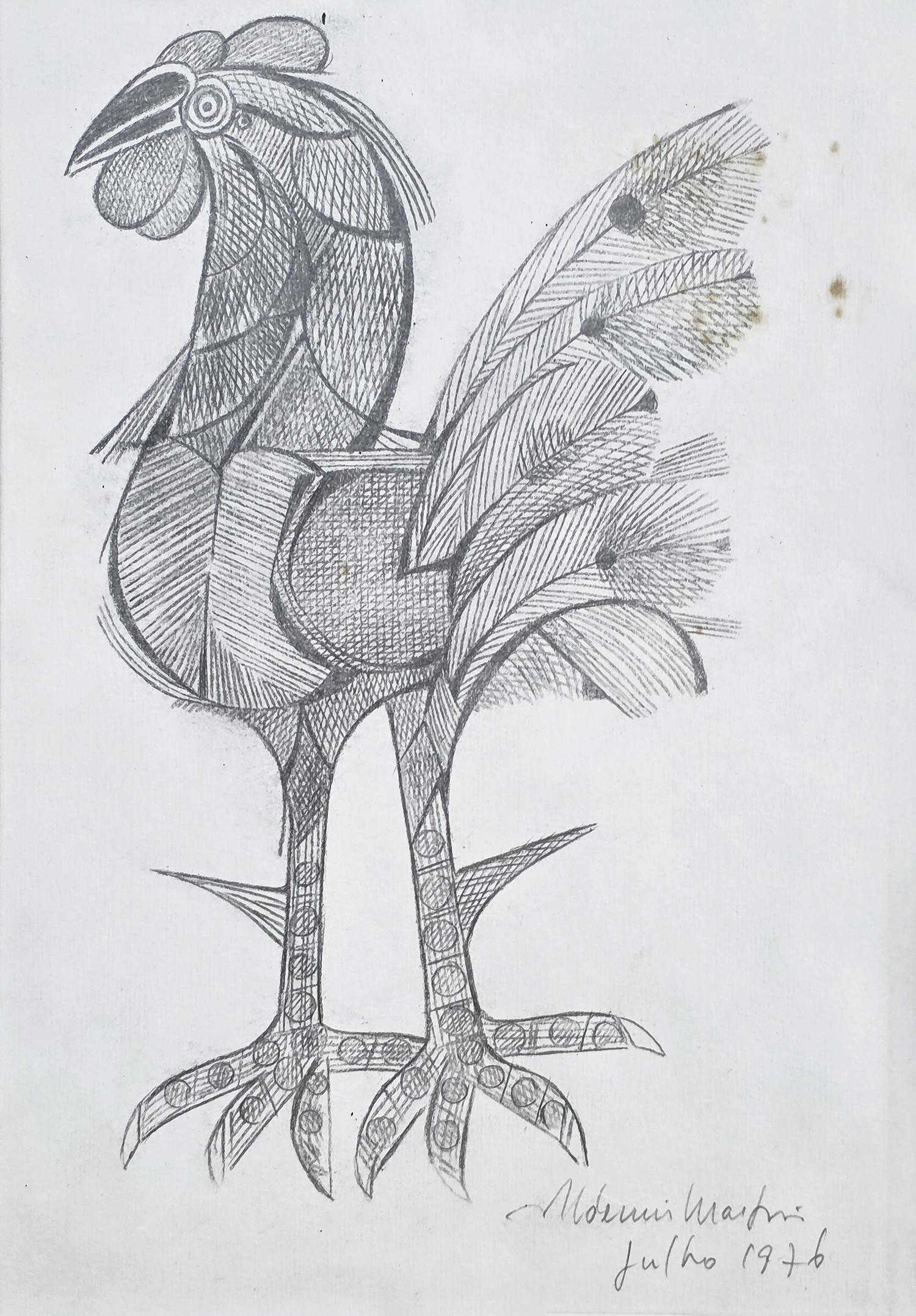 Aldemir Martins - Galo - Desenho a Nanquim e Aquarela - 1976 - 16x11 - Ass.inf.dir - Com certificado do Estudio Aldemir Martins