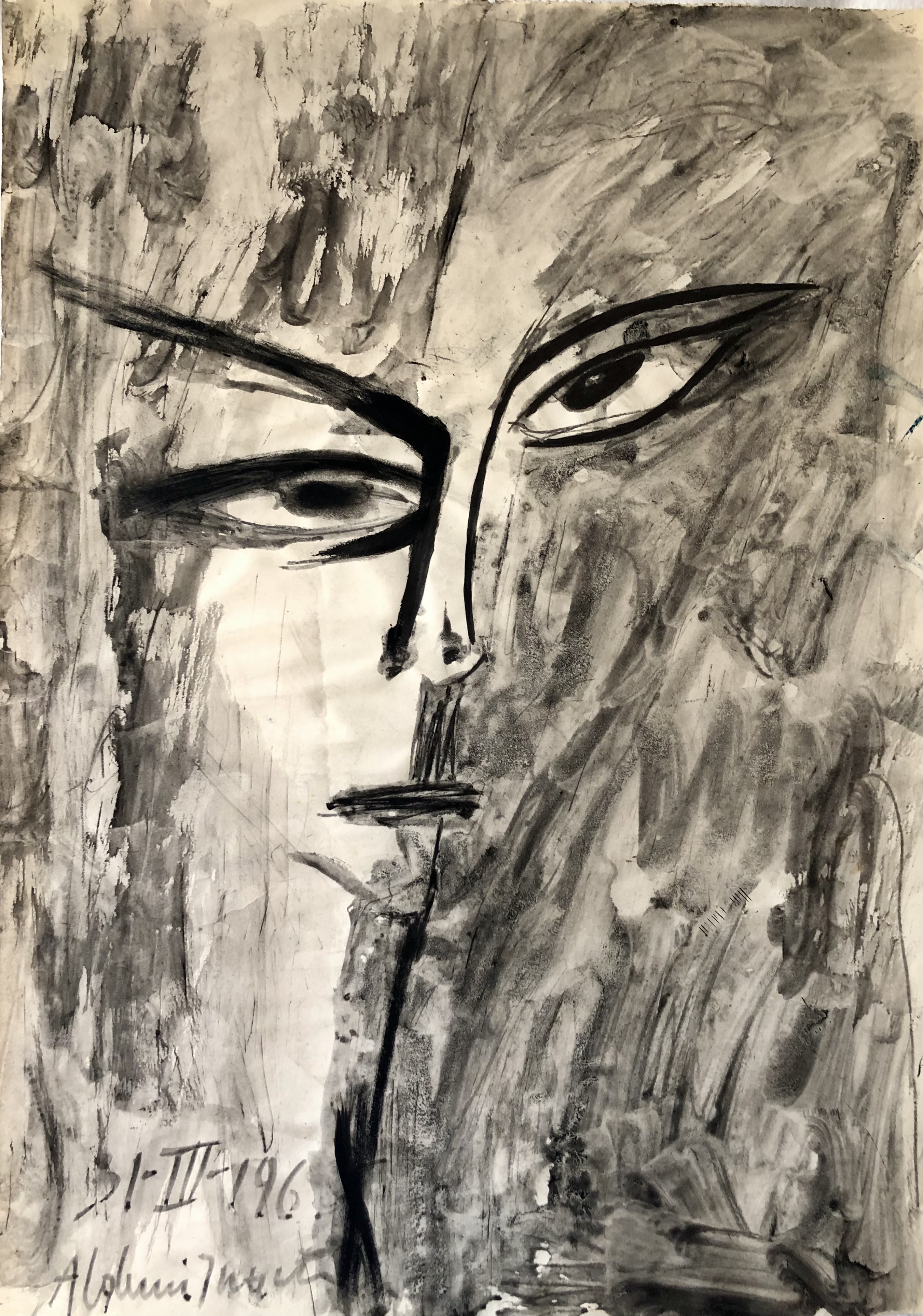 Aldemir Martins - Girassol. Nanquim e acrílica sobre papel, 69x19 cm, 1962, A.C.I.E. e V. Sem moldura