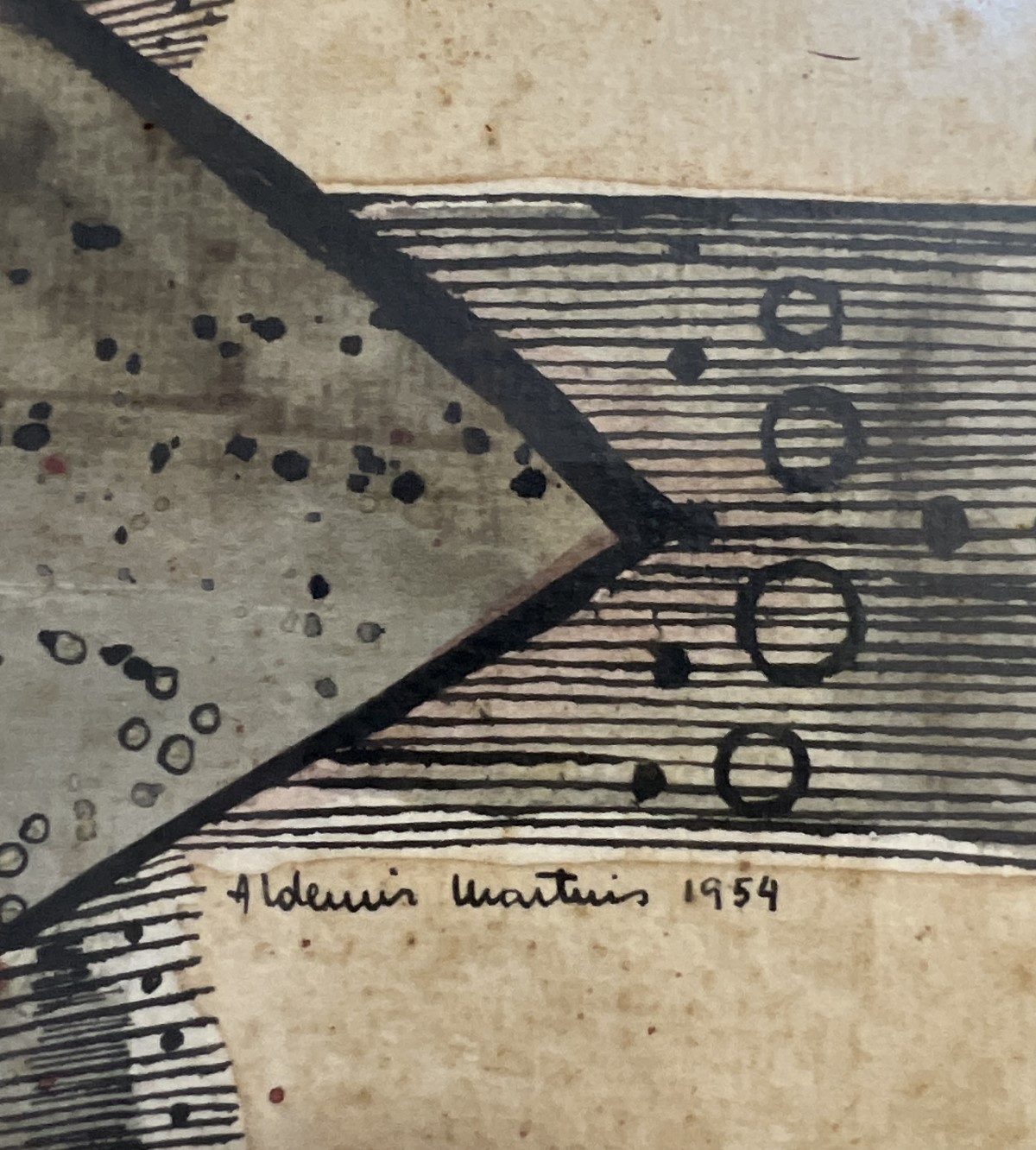 Aldemir Martins - Côcos - 35 x 35 cm - Nanquim e aguada sobre papel - Assinatura canto inferior direito e Data 1960 - Catalogado na Galeria Bonino sob o número 782
