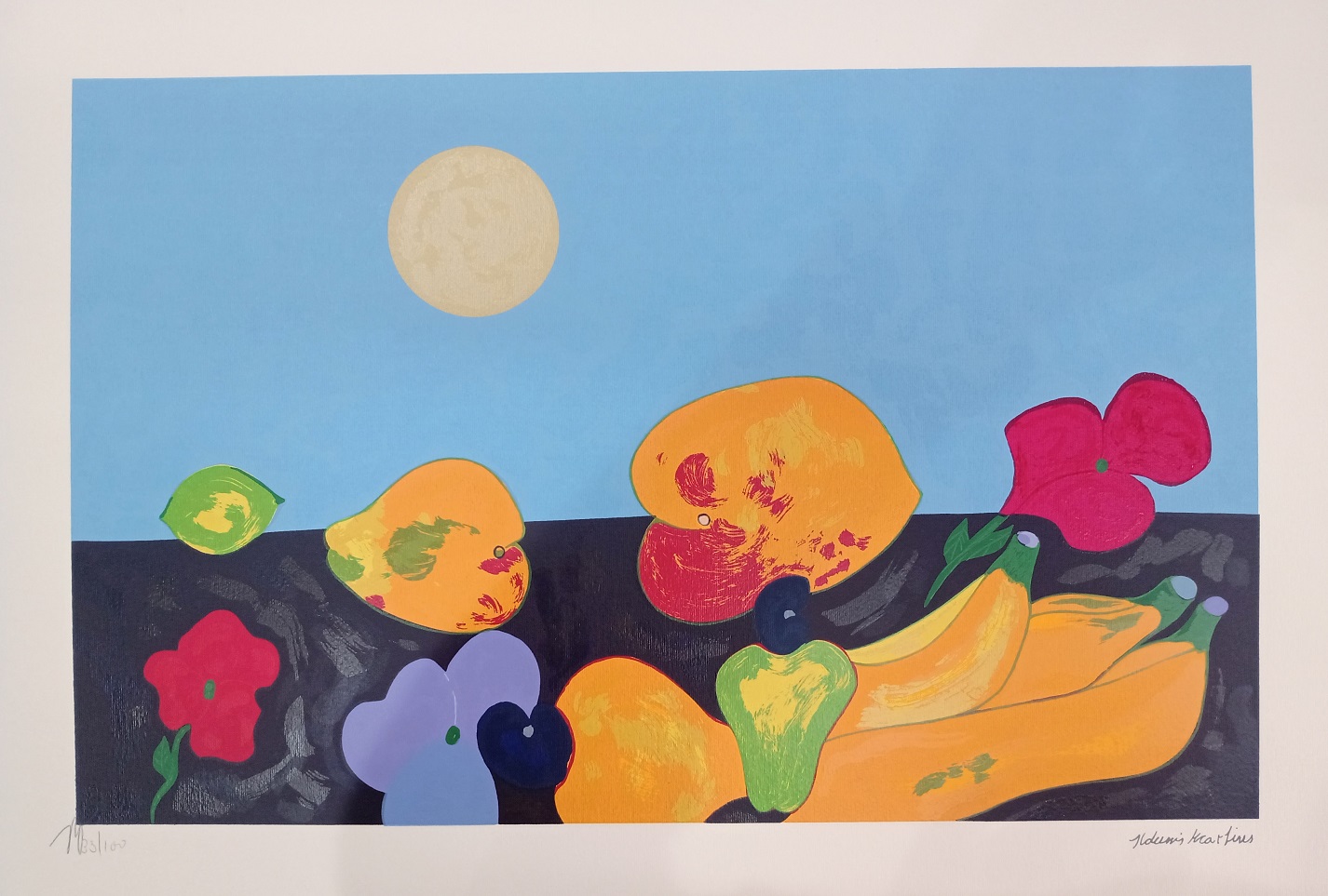 Aldemir Martins - Bananas verdes - 59 x 73 cm - Óleo sobre tela - Assinatura canto inferior direito e Data 1973 - Catalogado sob o número BR 5503 da Galeria Bonino