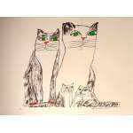 ALDEMIR MARTINS, Família de gatos - serigrafia 99/120 - 79x35 cm - Póstuma Ass. Impressa