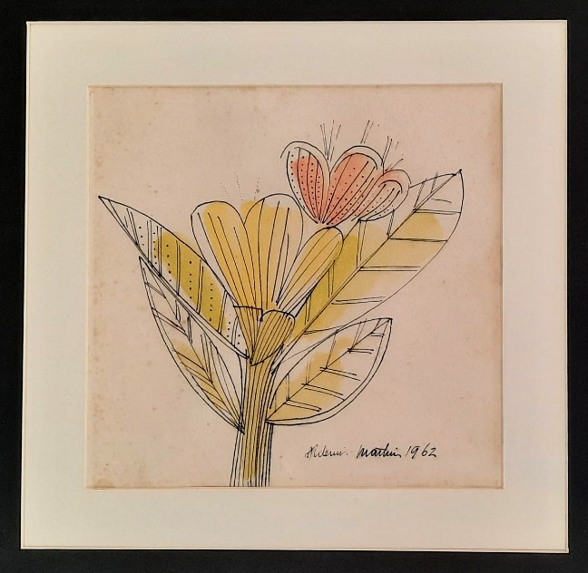 Aldemir Martins - Côcos - 35 x 35 cm - Nanquim e aguada sobre papel - Assinatura canto inferior direito e Data 1960 - Catalogado na Galeria Bonino sob o número 782