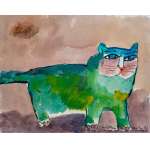 Aldemir Martins - Gato verde - 40 x 40 cm - Acrílica sobre tela - Assinatura canto inferior esquerdo e Data 2002 - Acompanha certificado de autenticidade emitido pelo Studio Aldemir Martins