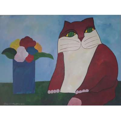 Aldemir Martins - Gato Azul - 1981 - Acrílica sobre tela - Assinado verso - 48 x 28 cm.