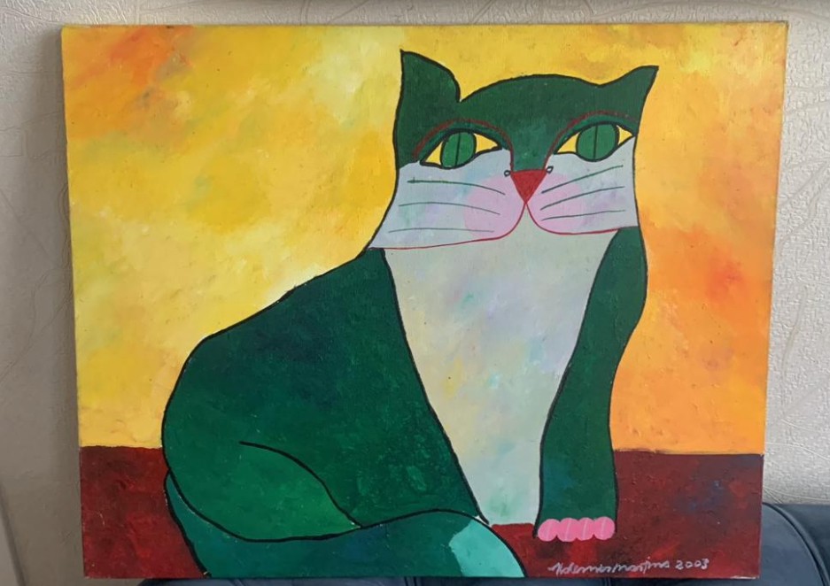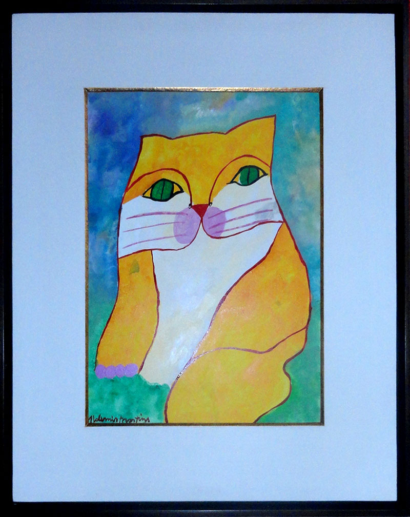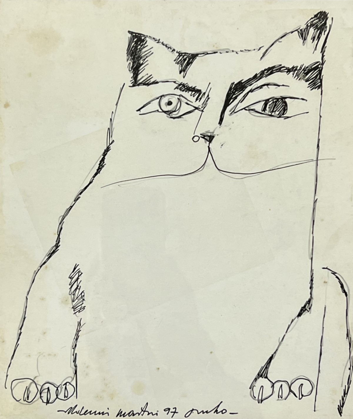 Aldemir Martins - Gato - Acrilica sobre cartão - 12x12 - Acie - Com Documento Autenticidade
