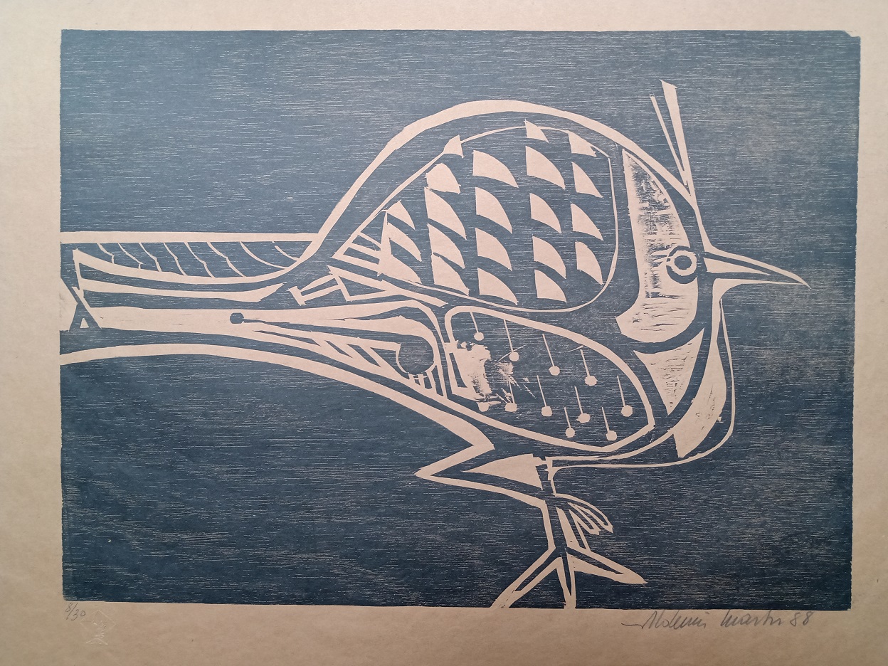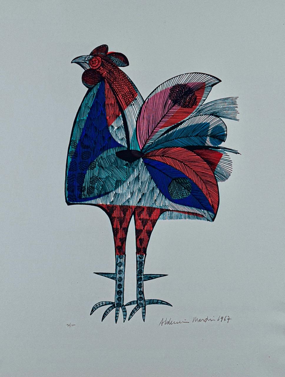 Aldemir Martins - Galo Azul - Serigrafia 25/100 - 50x35 - Acid - Edição Postutuma