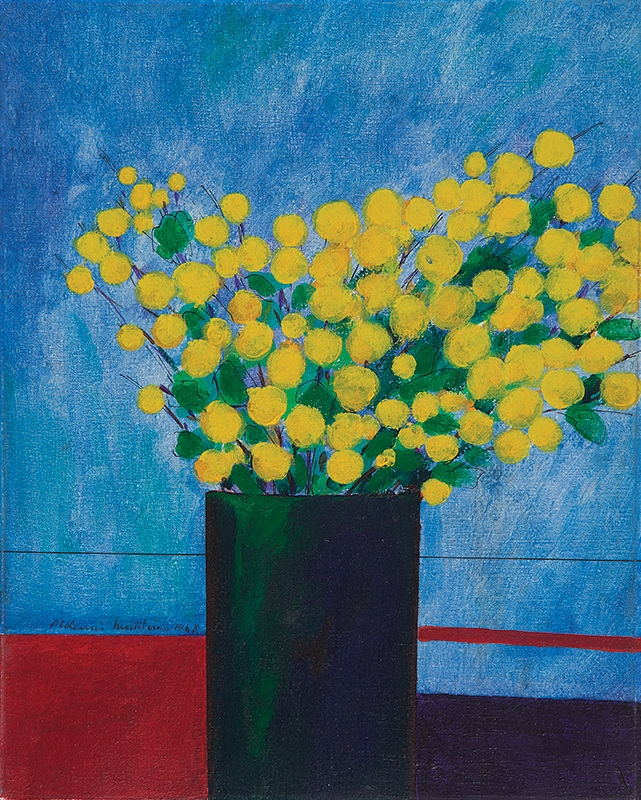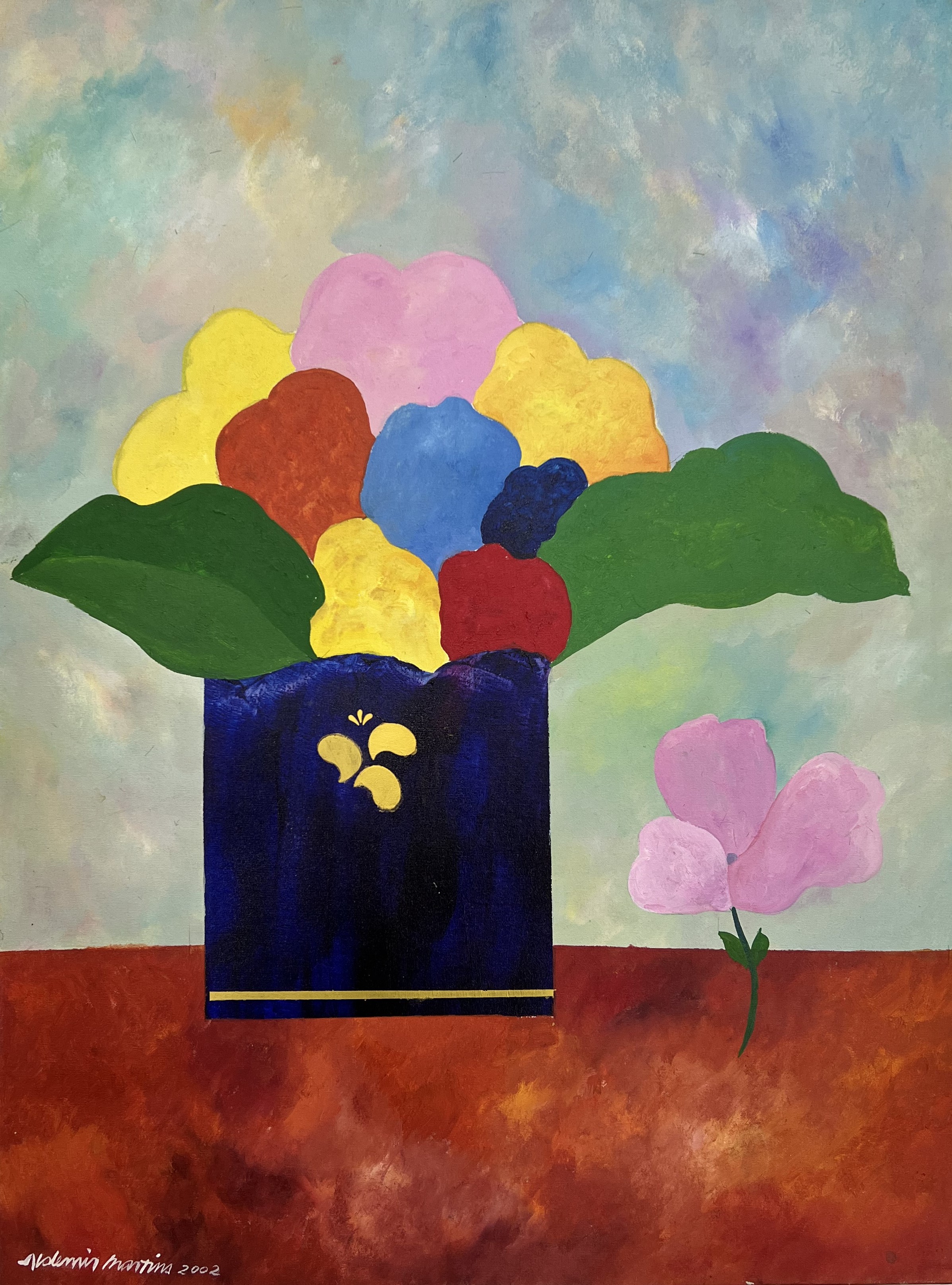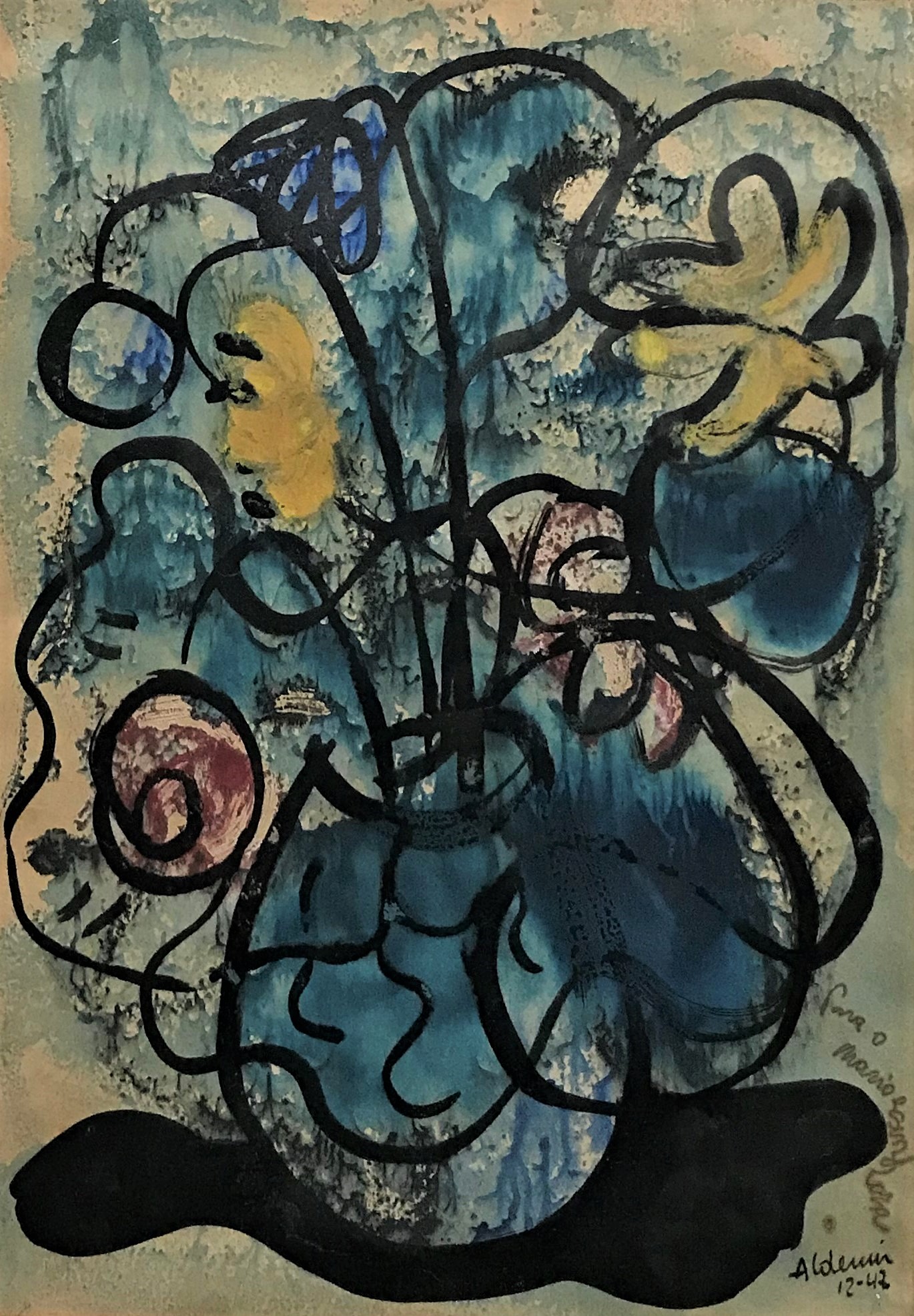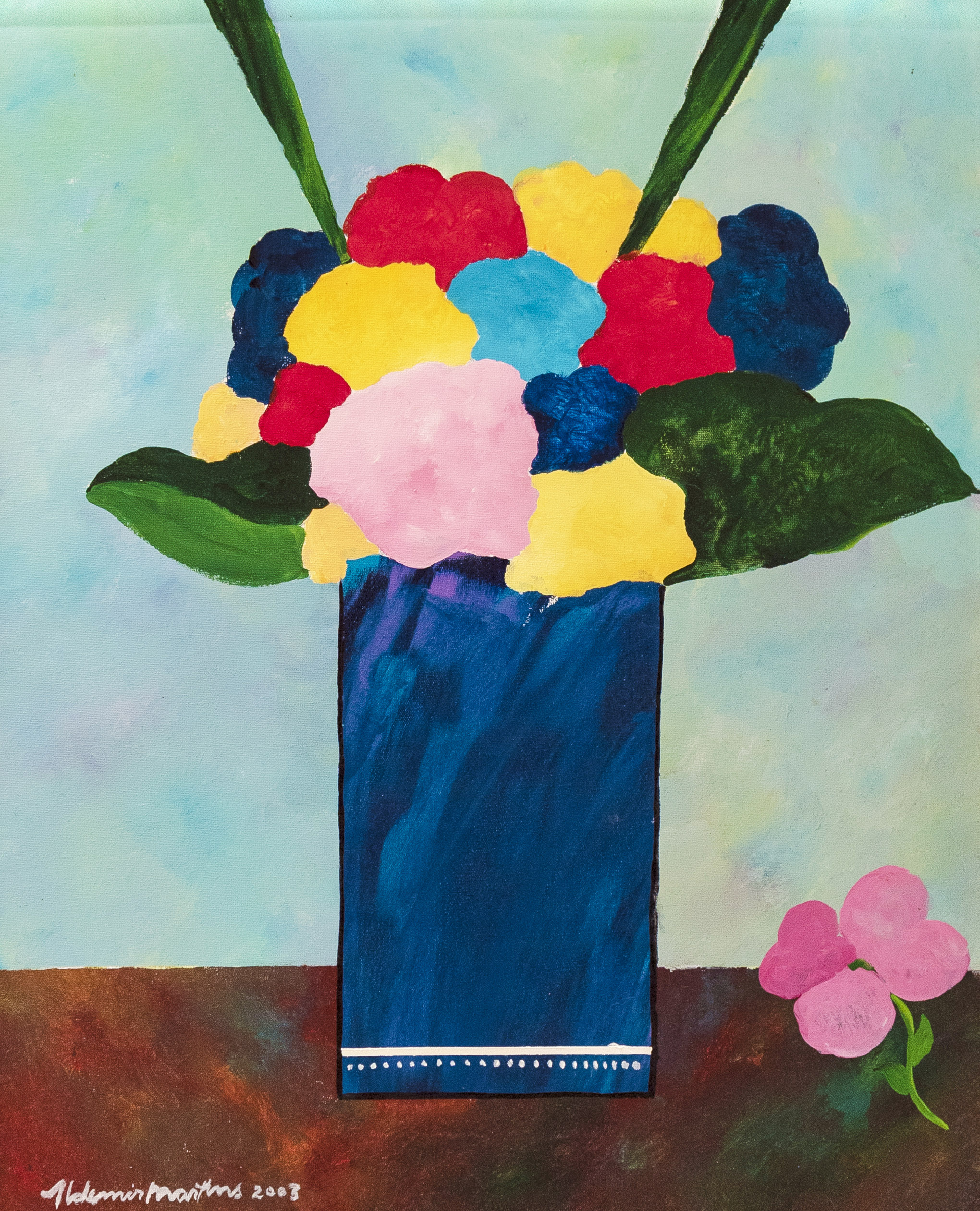 Aldemir Martins - Vaso de flores. Óleo sobre tela, 75x25 cm, sem data, sem assinatura. Com moldura e certificado do Estúdio Aldemir Martins.