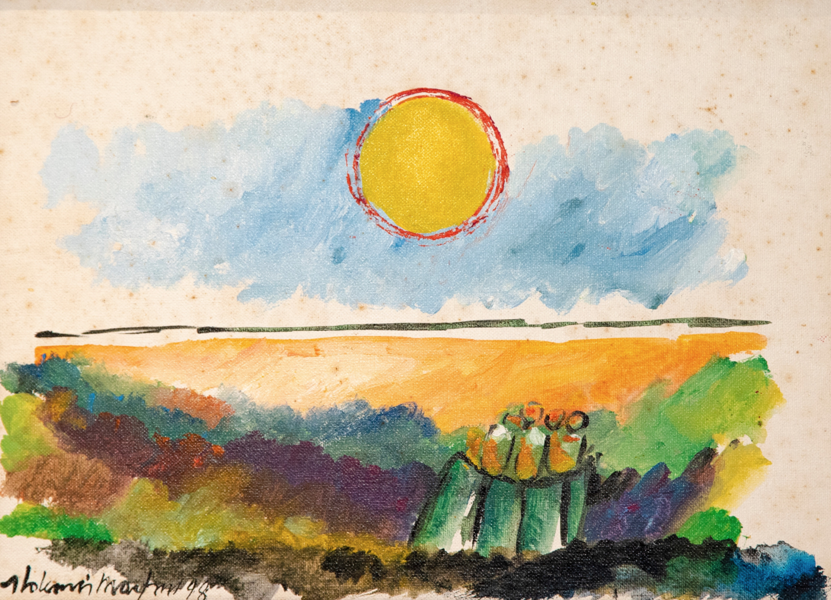 Aldemir Martins - Paisagem. Óleo sobre madeira, 29,5x27 cm, 1981, A.C.I.E. Com moldura