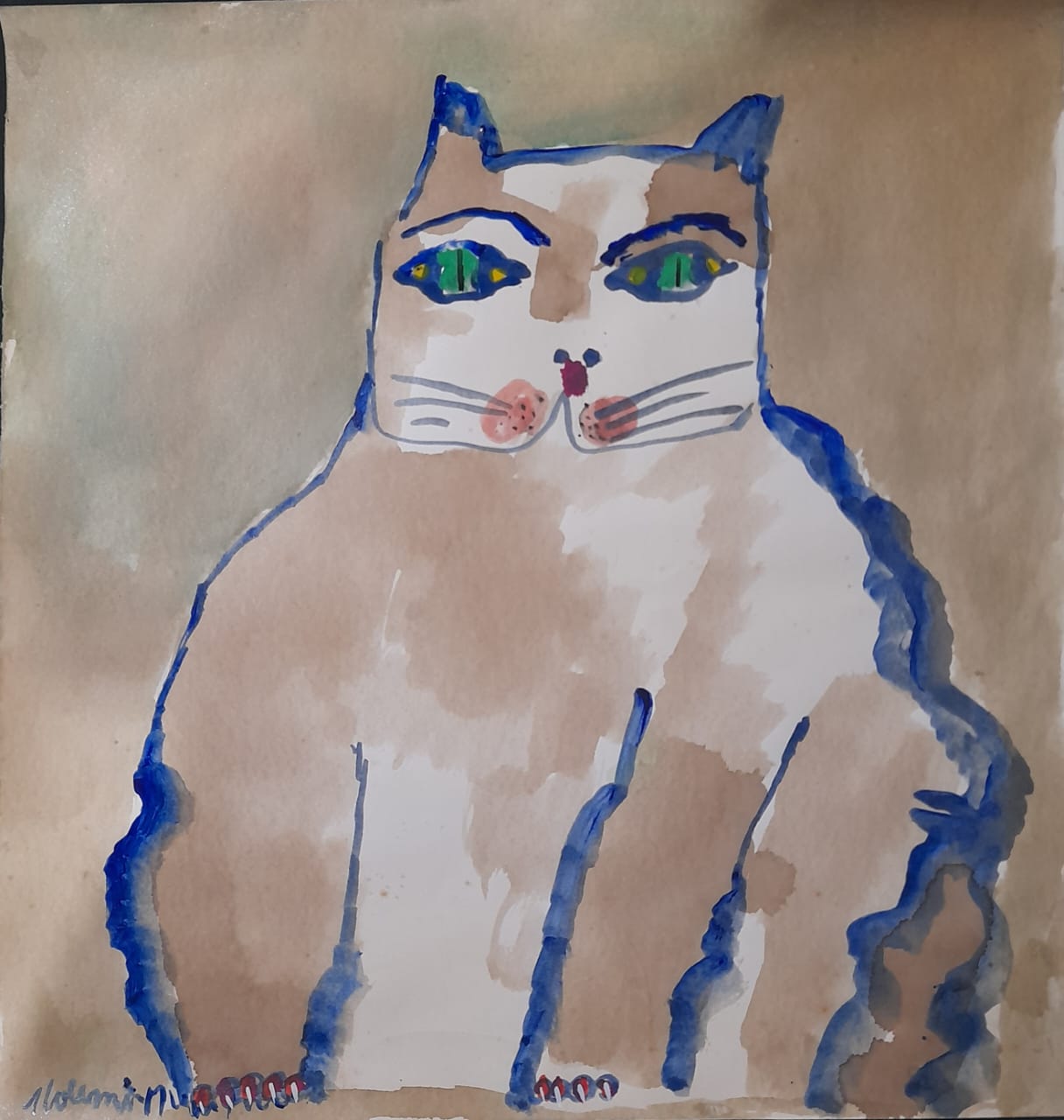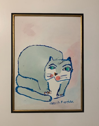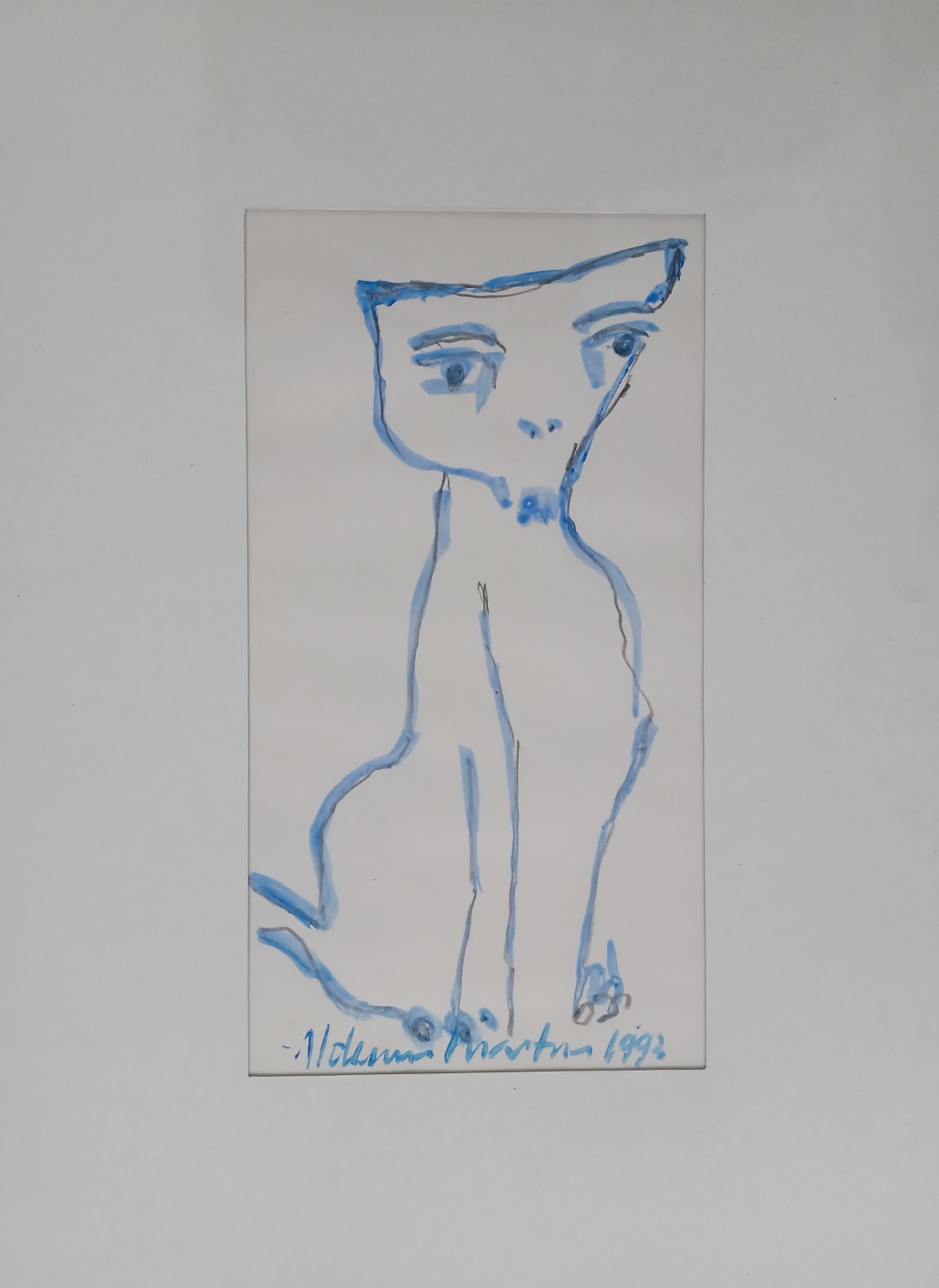 Aldemir Martins - Gatinho azul. Acrílica sobre papel, 22x14,5 cm, 1985, A.C.I.D. Sem moldura. Com certificado de autenticidade do Estúdio Aldemir Martins
