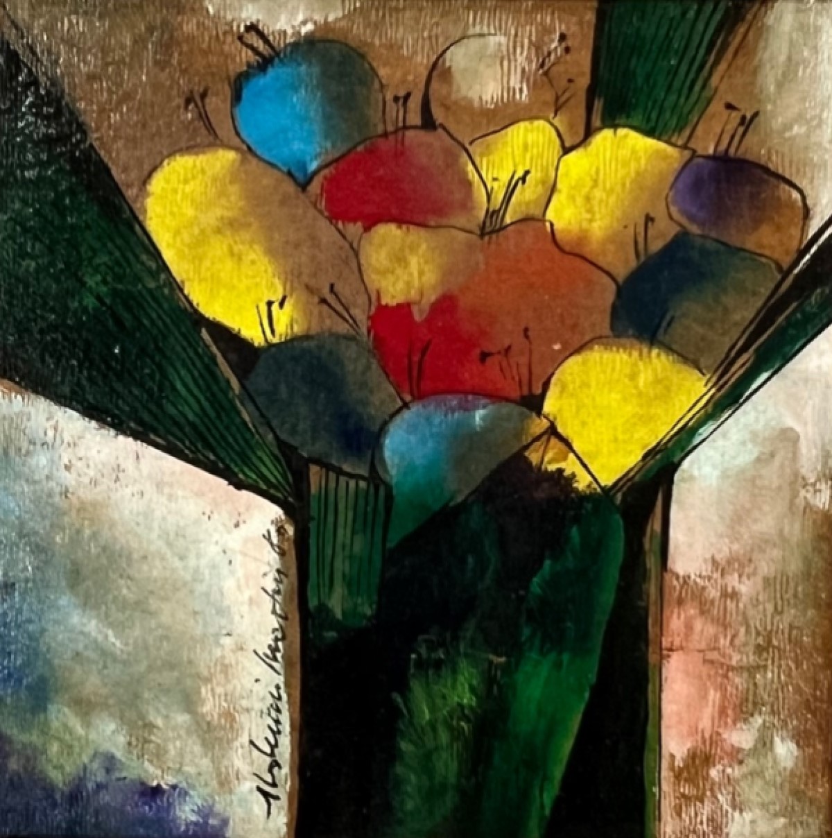 Aldemir Martins - Flor. Acrílica sobre papel, 35x35 cm, 1995, A.C.I. Com moldura e certificado do Estúdio Aldemir Martins