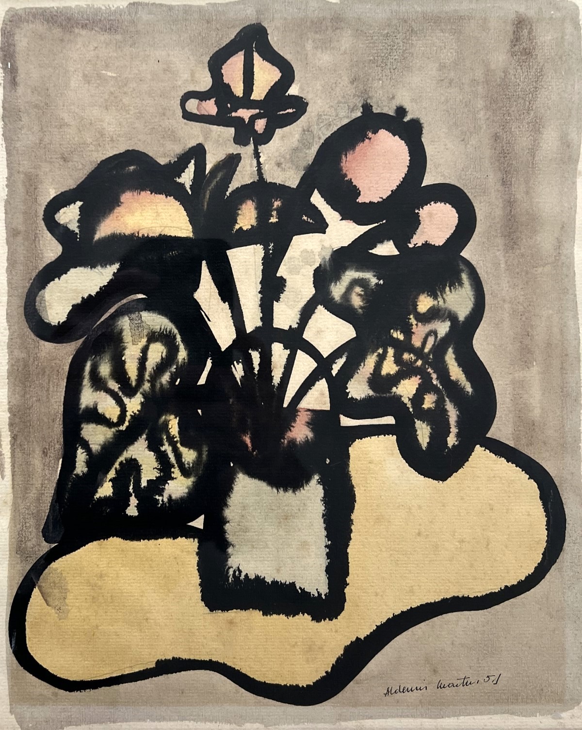 Aldemir Martins - Flor - Nanquim e Aquarela sobre cartão - 08x11 - Acid - Com Documento Autenticidade