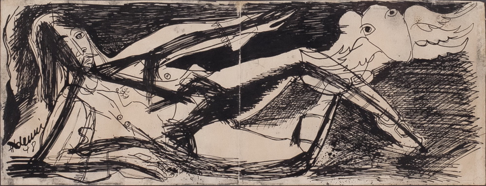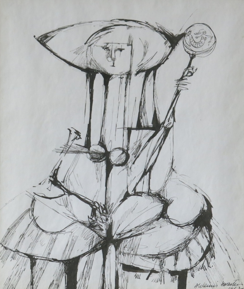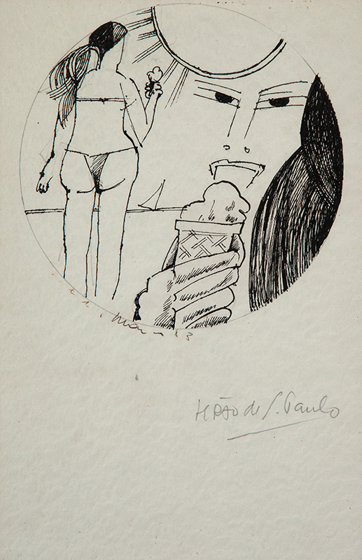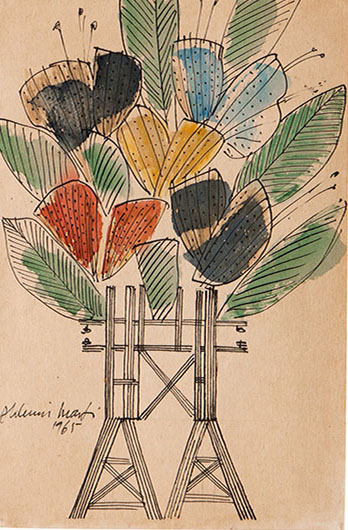 Aldemir Martins - Girassol. Nanquim e acrílica sobre papel, 69x19 cm, 1962, A.C.I.E. e V. Sem moldura