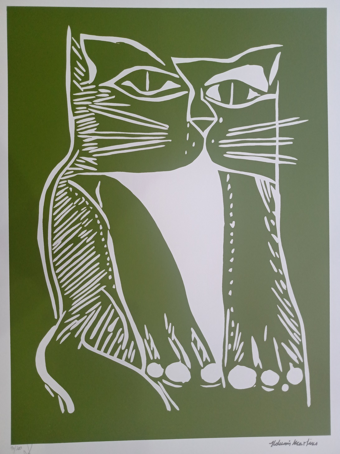 Aldemir Martins - Gato Fundo Verde - Serigrafia 7/100 - 70x50 - Acid - Edição Postutuma