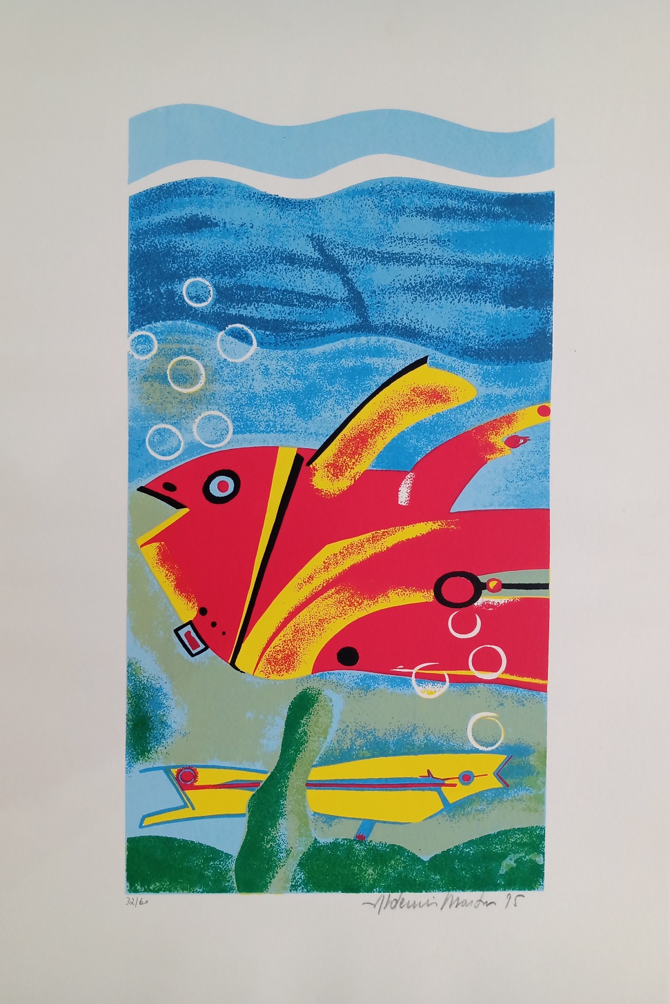 Aldemir Martins - Peixe. Acrílica sobre cartão, 30x40 cm, 1997-98, A.C.I.D. Sem moldura, com certificado assinado pelo próprio Aldemir.