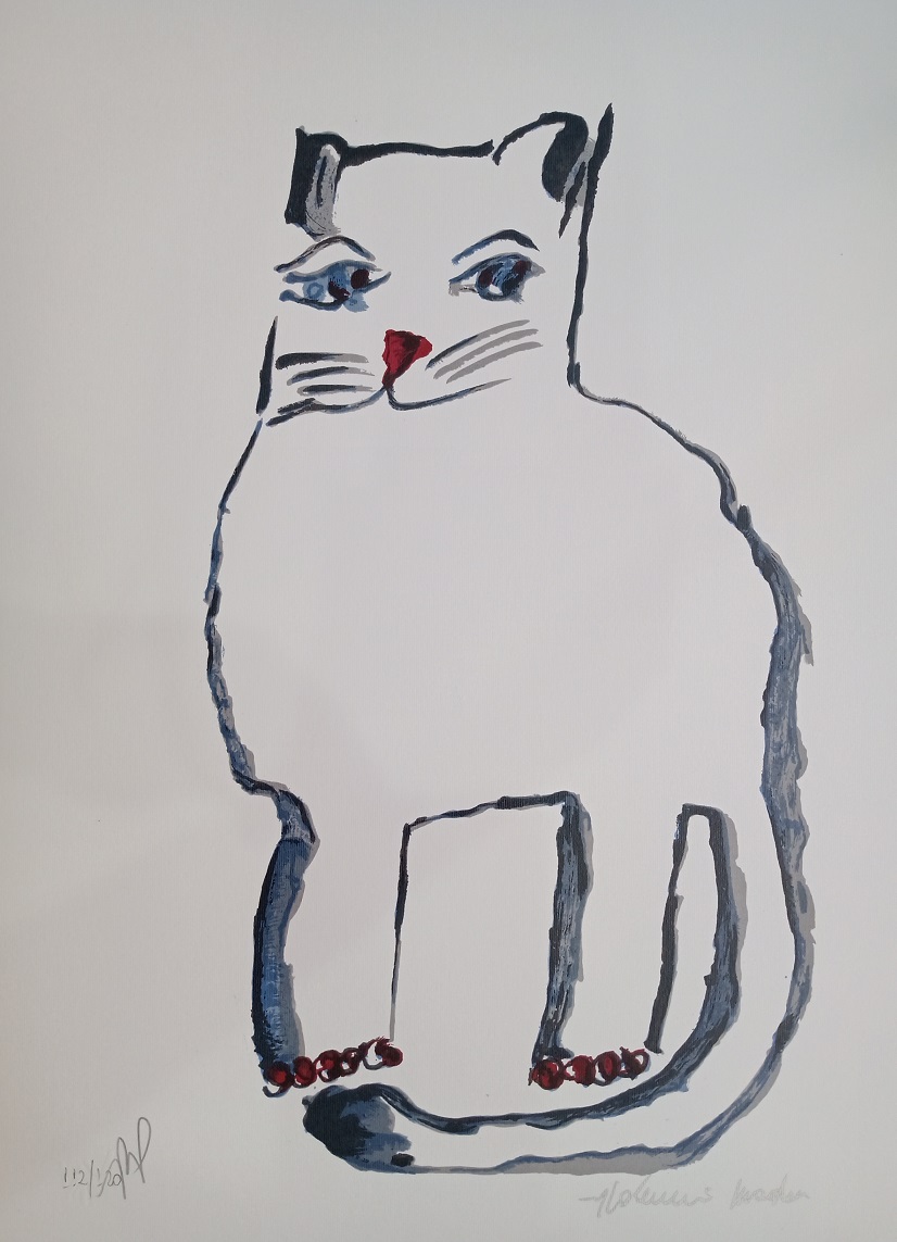Aldemir Martins - Gato branco - Serigrafia 82/120 - 80x35 - Acid - Edição Postutuma
