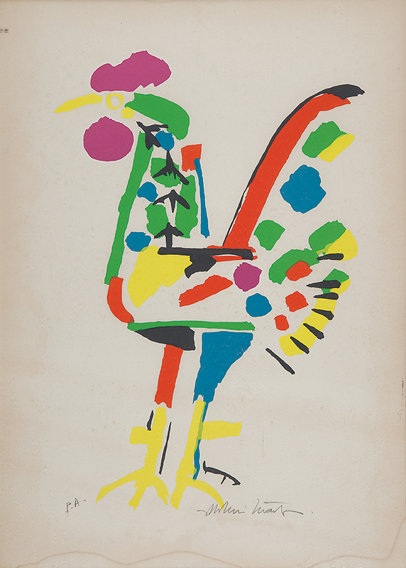 Aldemir Martins - Galo - 9-60. Serigrafia, 66x48 cm, 1966, A.C.I.D. a lápis. Com moldura