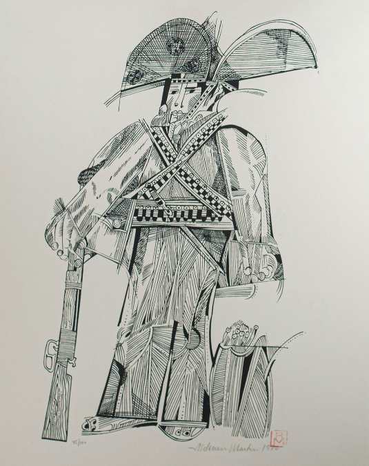 ALDEMIR MARTINS - Cangaceiro com espingarda - Nanquim sobre papel - Dat. 1952 - CID - (Acompanha certificado) - 25 x 17 cm.