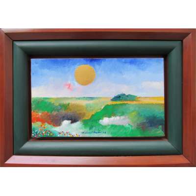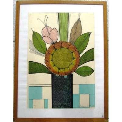 Aldemir Martins. Vaso com Flores. Acrílica sobre cartão, 31,5 x 21,5 cm. Assinado e datado embaixo no centro: Aldemir Martins 2000.